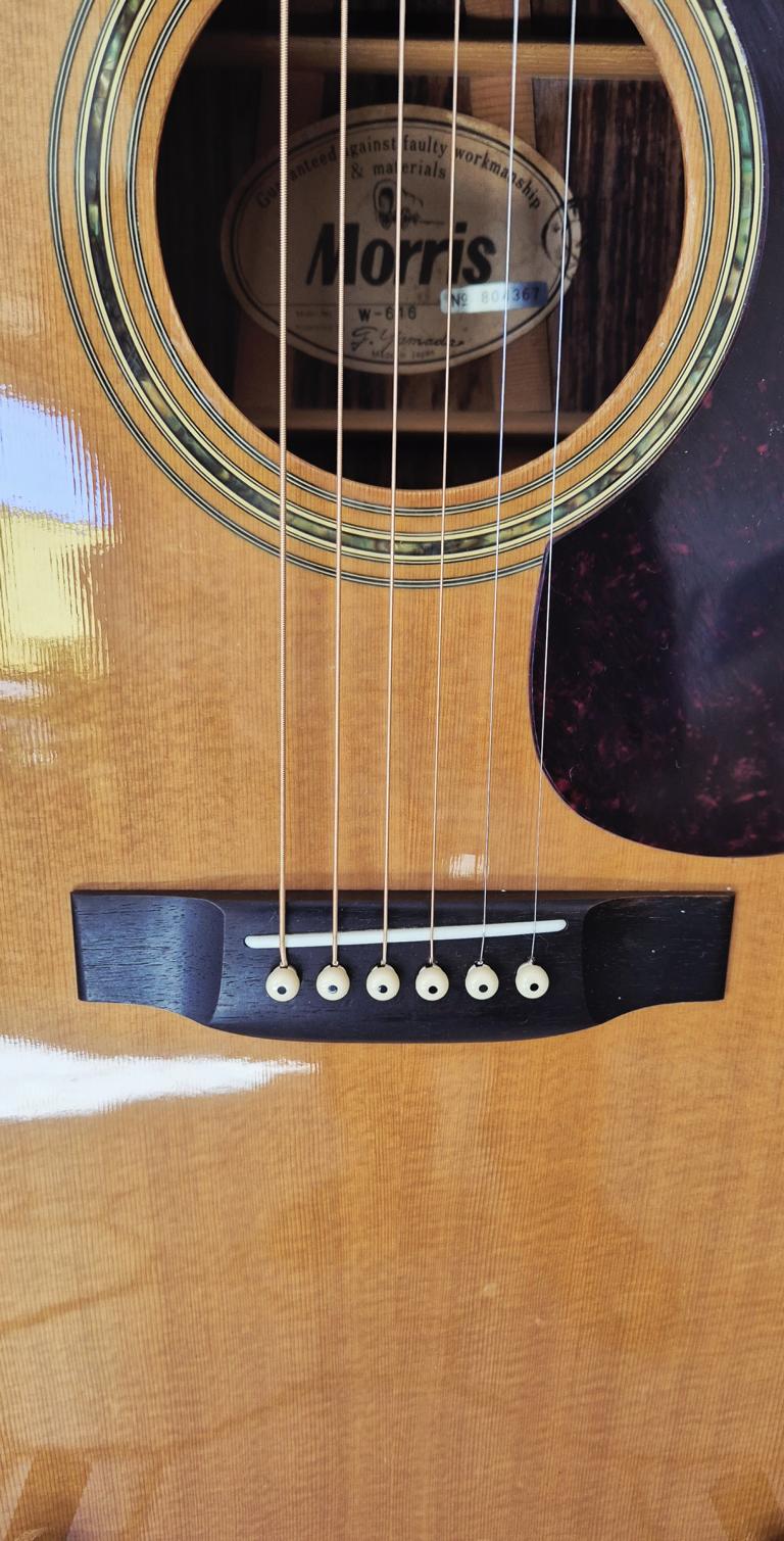 Die Instrumente von Morris aus dieser Zeit zeichnen sich durch eine besonders herausragende Fertigungsqualität aus und sind ein echter Geheimtipp für jemanden, der auf der Suche nach einer klangstarken „vintage Martin“ ist, aber nicht ganz so tief in die Tasche greifen möchte. In traditioneller Handarbeit gefertigt, besitzt die W-616 eine hervorragende Verarbeitungsqualität und steht so einer vintage Martin in kaum etwas nach.