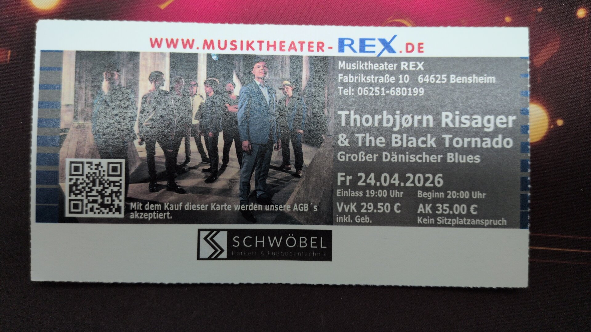 Habe hier also 1 Ticket für Thorbjørn Risager & The Black Tornado am 24.4. im Rex in 64625 Bensheim abzugeben. Ich hatte letztes Jahr schon das Vergnügen mit den Jungs und kann "Großer Dänischer Blues" nur unterschreiben.