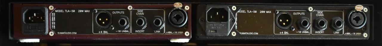 Bei einem der beiden Geräte hat das VU-Meter eine Macke. Es zeigt zwar die Werte an, die Nadel wirkt aber wie "ungebremst" und ist sehr unruhig. Klanglich habe ich jedoch keinen Nachteil erkennen können und ich habe damit einfach weitergearbeitet. Beide Geräte können über eine Buchse an der Rückseite per Stereo-Link genutzt werden. Auch ein Sidechain-Input ist vorhanden.