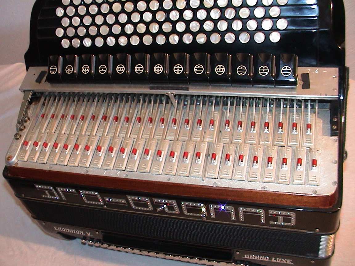 das Akkordeon hat markierte Knöpfe, Ersatzknöpfe zum Austausch inkl.