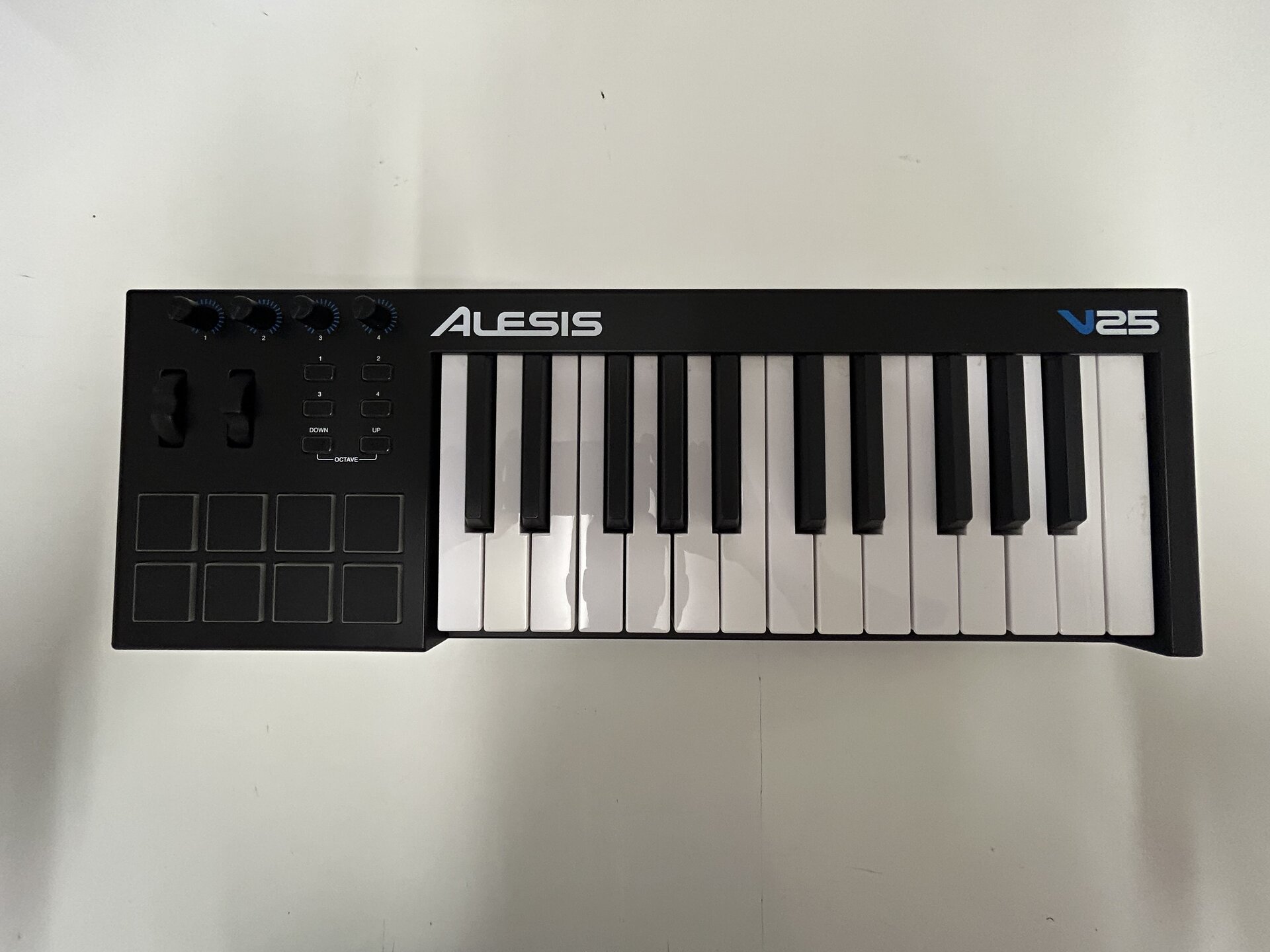 Verkaufe meinen ALESIS Midi-Controller V25 (25 Tasten, zwei Oktaven) inkl. USB-Kabel für die Stromversorgung. Ein Sustain-Pedal kann optional angeschlossen werden. Die benötigte Software (Windows 10/11) kommt auf CD mit. Gebraucht aber in sehr gutem Zustand, keine Live-Nutzung. Die Versandkosten für DHL in D übernehme ich.