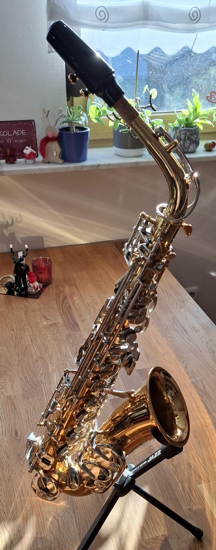 Das Alt-Saxophon hat nur sehr geringe Gebrauchsspuren und die Klappen schließen einwandfrei. Der Sound ist sehr flexibel und die leichte Ansprache machen das Instrument für viele Musikrichtungen sehr interessant.