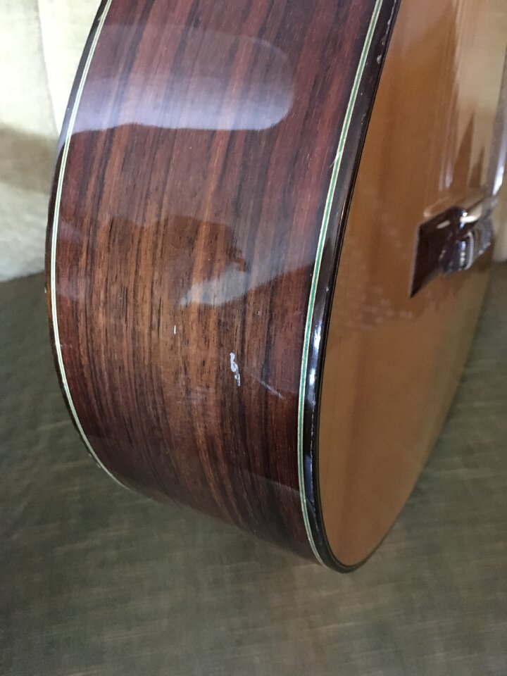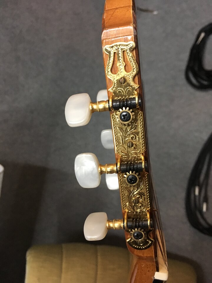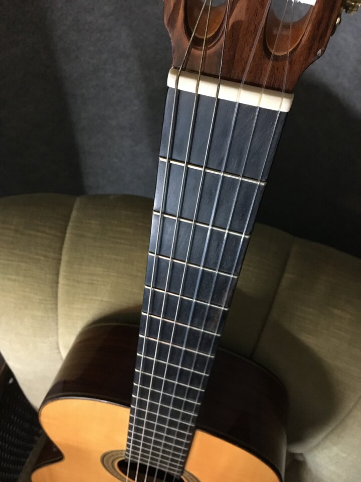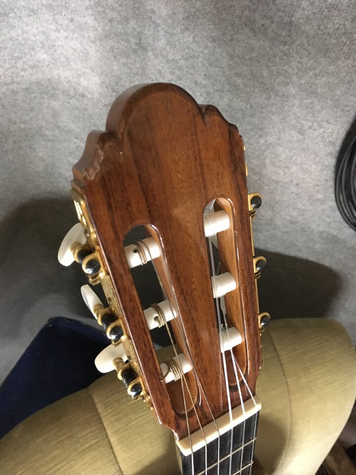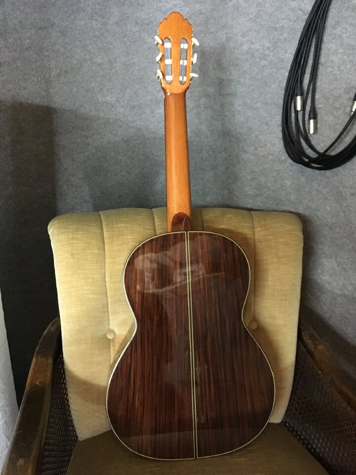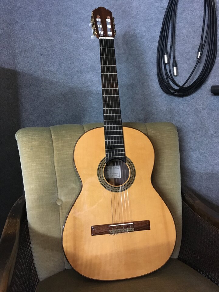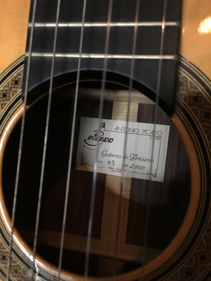 Verkaufe meine Konzertgitarre von Picado aus Spanien, Baujahr 2000, Mensur 650mm, handgebaut, mit massiver Fichtendecke, Zargen massiv und Boden laminiert aus indischem Palisander, Hals aus hondurianischem Cedro mit Ebenholz Griffbrett. Einige leichte Gebrauchsspuren (Dellen/Lackabplatzer, siehe Bilder), keine größeren