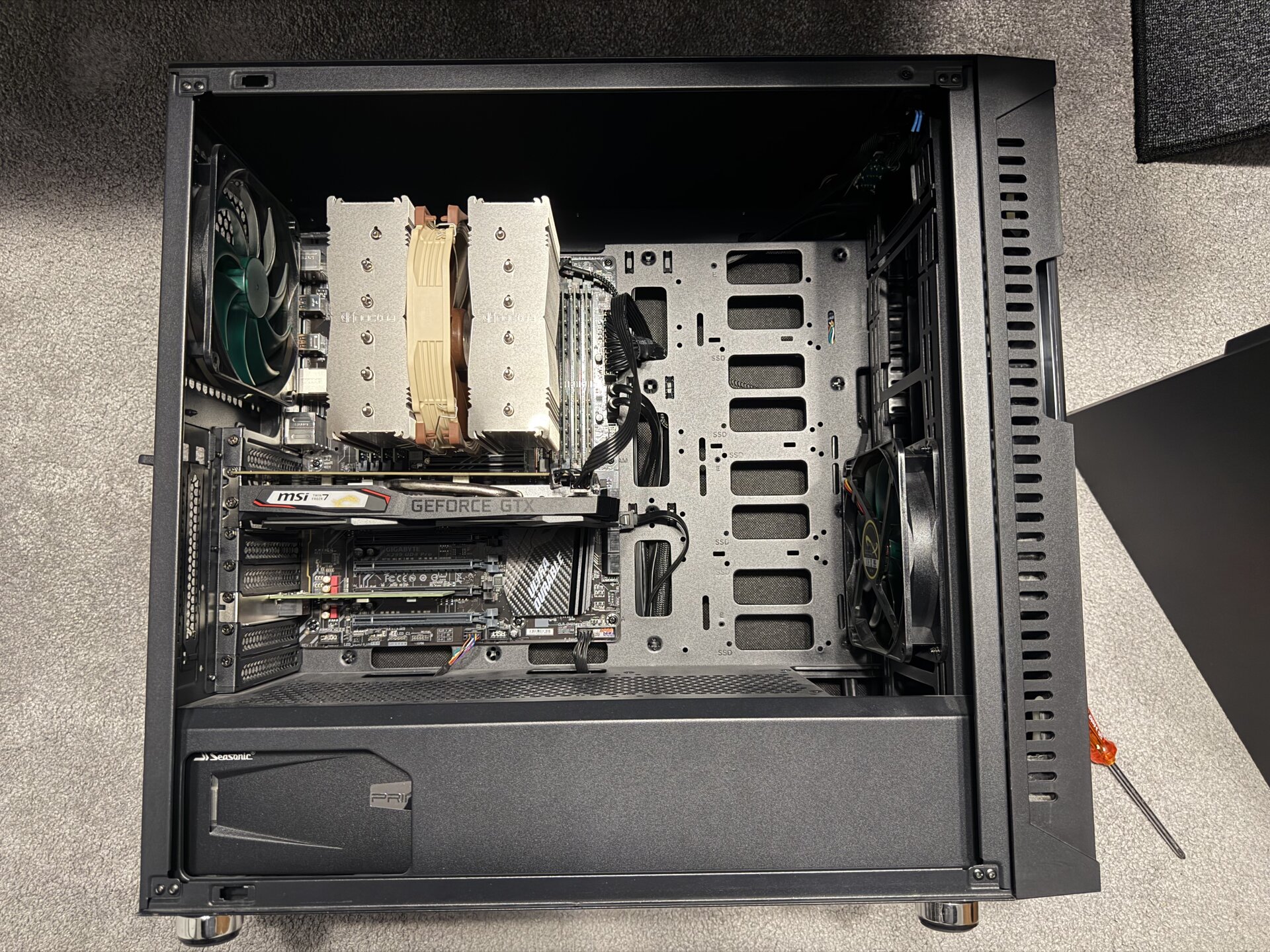 - GPU, Netzteil, Gehäuse, SSDs, Noctua-Kühler: ~550 €