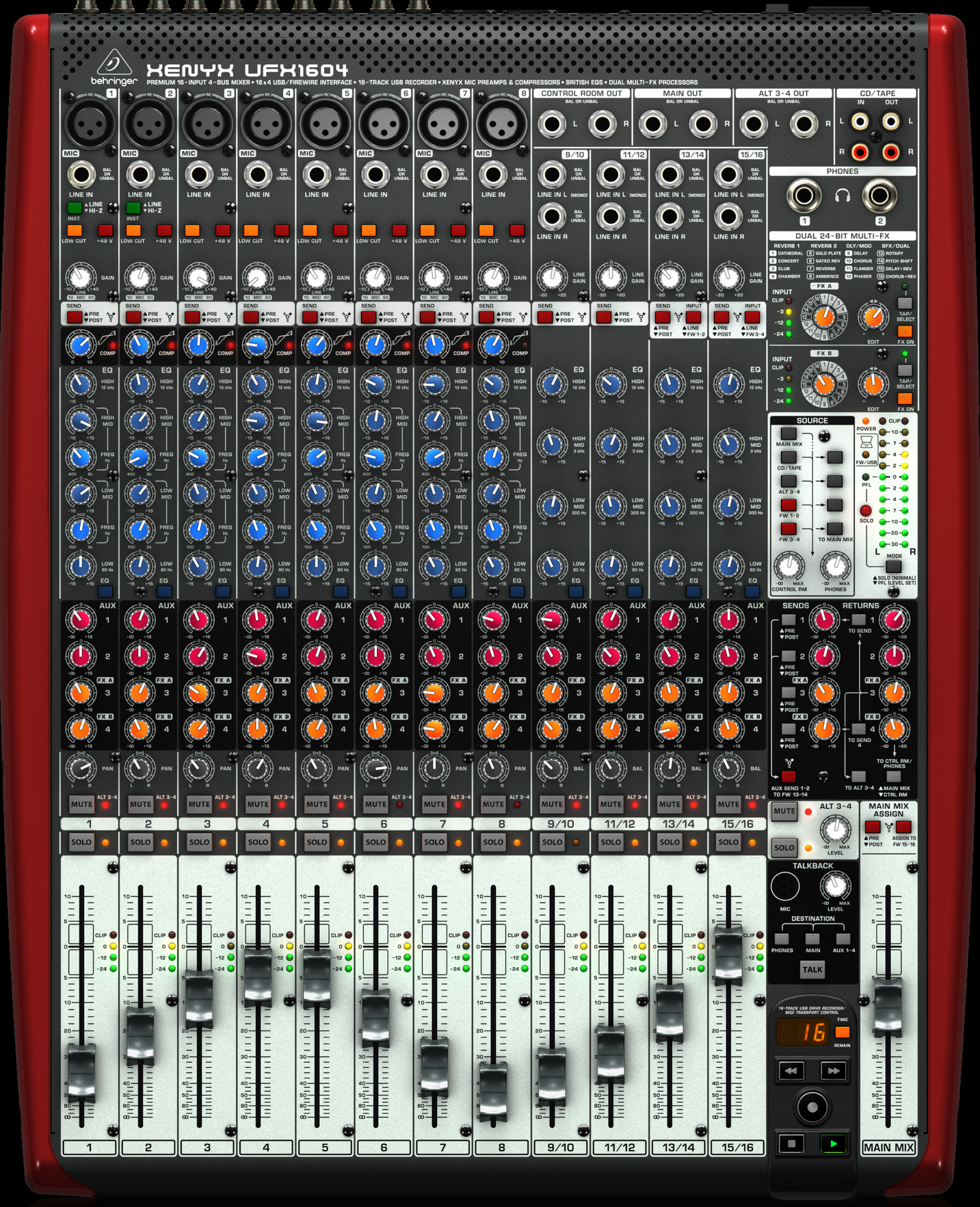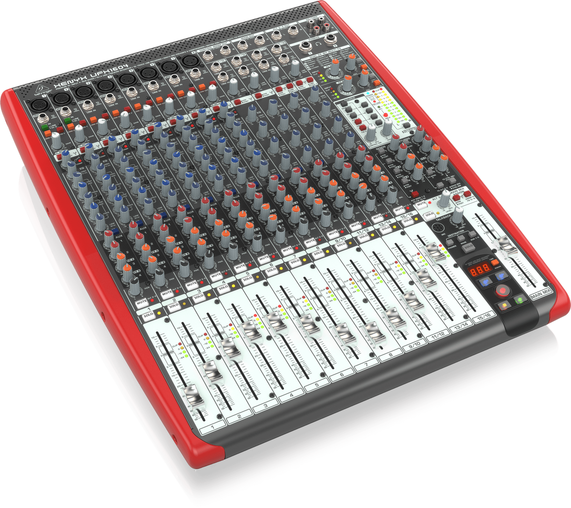 Das XENYX ist ein Mischpult mit 8 Monokanälen und 4 Stereokanälen, digitalen Schnittstellen, einem super Multi-FX-Prozessor (Echo, Hall u.v.m.) sowie einem USB-RECORDER. Die Universalwaffe für die Bühne und den Proberaum! Das Gerät war nur selten auf einer Bühne, meist nur im Übungsraum, um dort perfekte Audio-Aufnahmen zu erzeugen (in meinem Fall mit Apple/Logic Pro X).