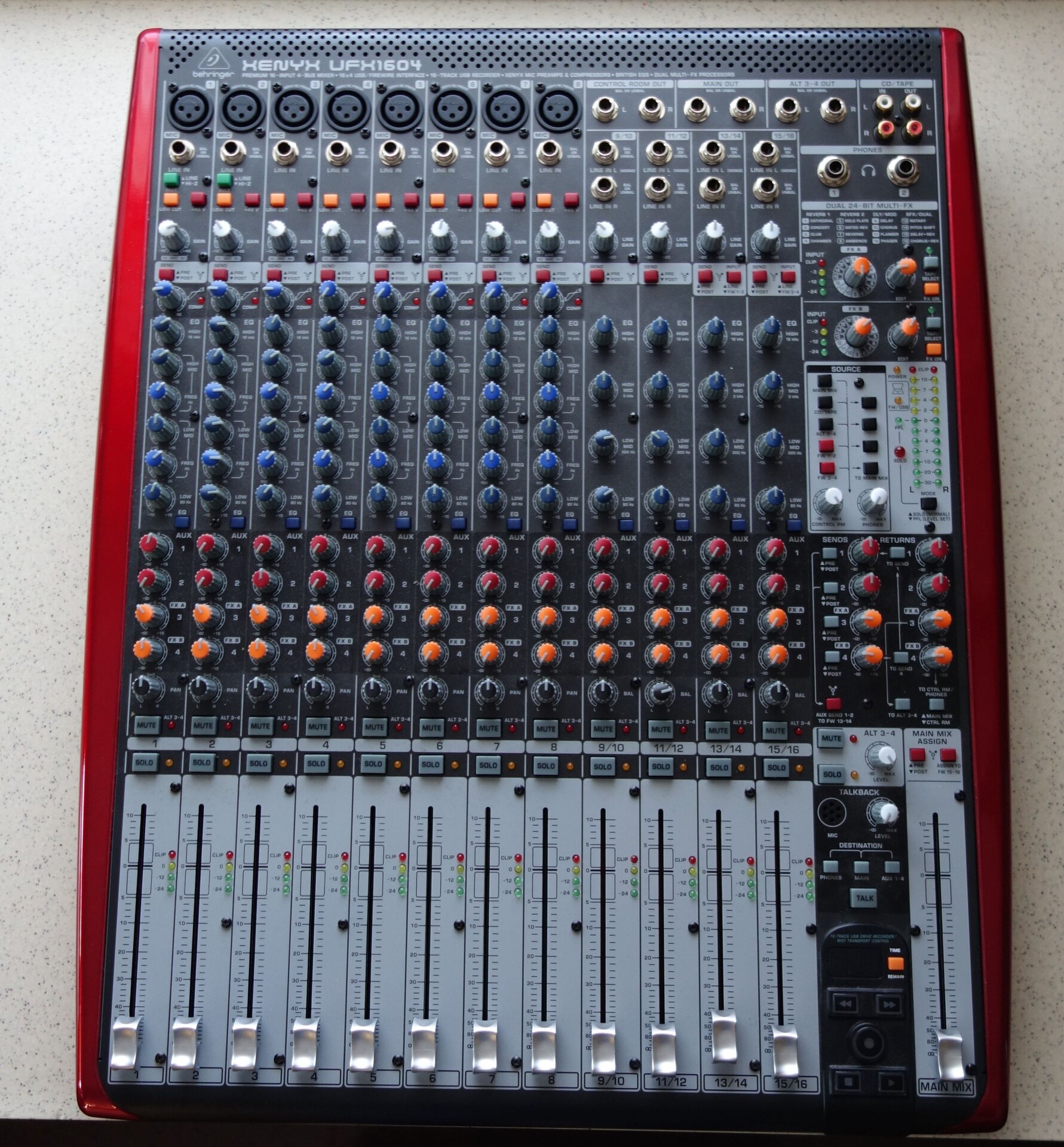 Mit 76 wird's langsam Zeit, sich als Rocker zur Ruhe zu setzen. Deshalb verkaufe ich hier mein BEHRINGER Mischpult XENYX UFX1604 (Neupreis ca. EUR 699.-) mit passendem JUSTIN-Koffer (Neupreis ca. EUR 175.-) für insgesamt nur EUR 399.- !