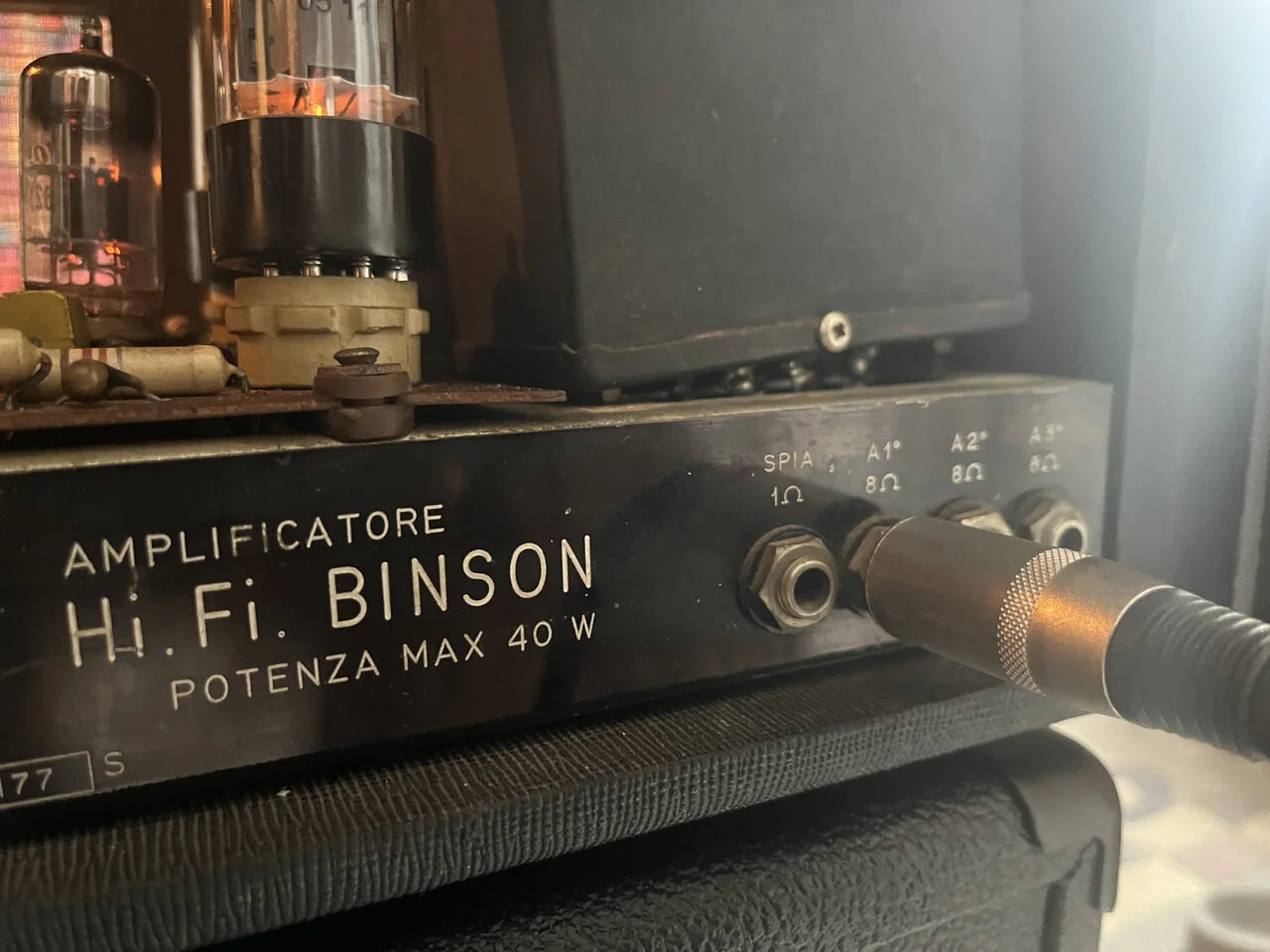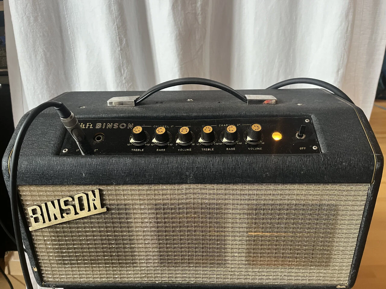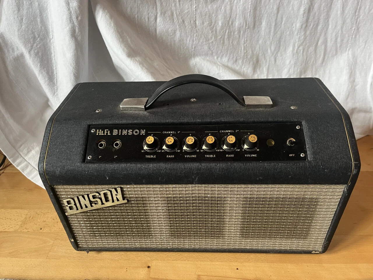 Binson Vollröhren Top, klingt gut, Beide Kanäle funktionieren. Gibt nich so viel Infos. Binson war ein italienischer Studioelektronikhersteller in den 60/70er Jahre, Berühmt für das Echorec, dass auch Pink Floyd nutzten. Der Amp holt aus 2 EL34 40 Watt.