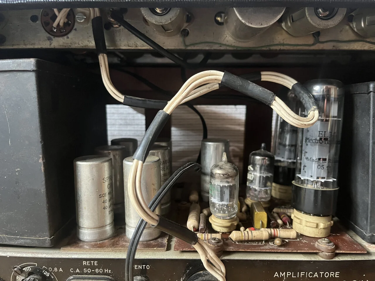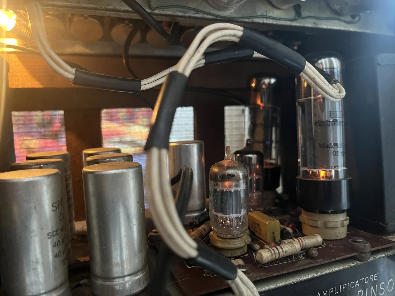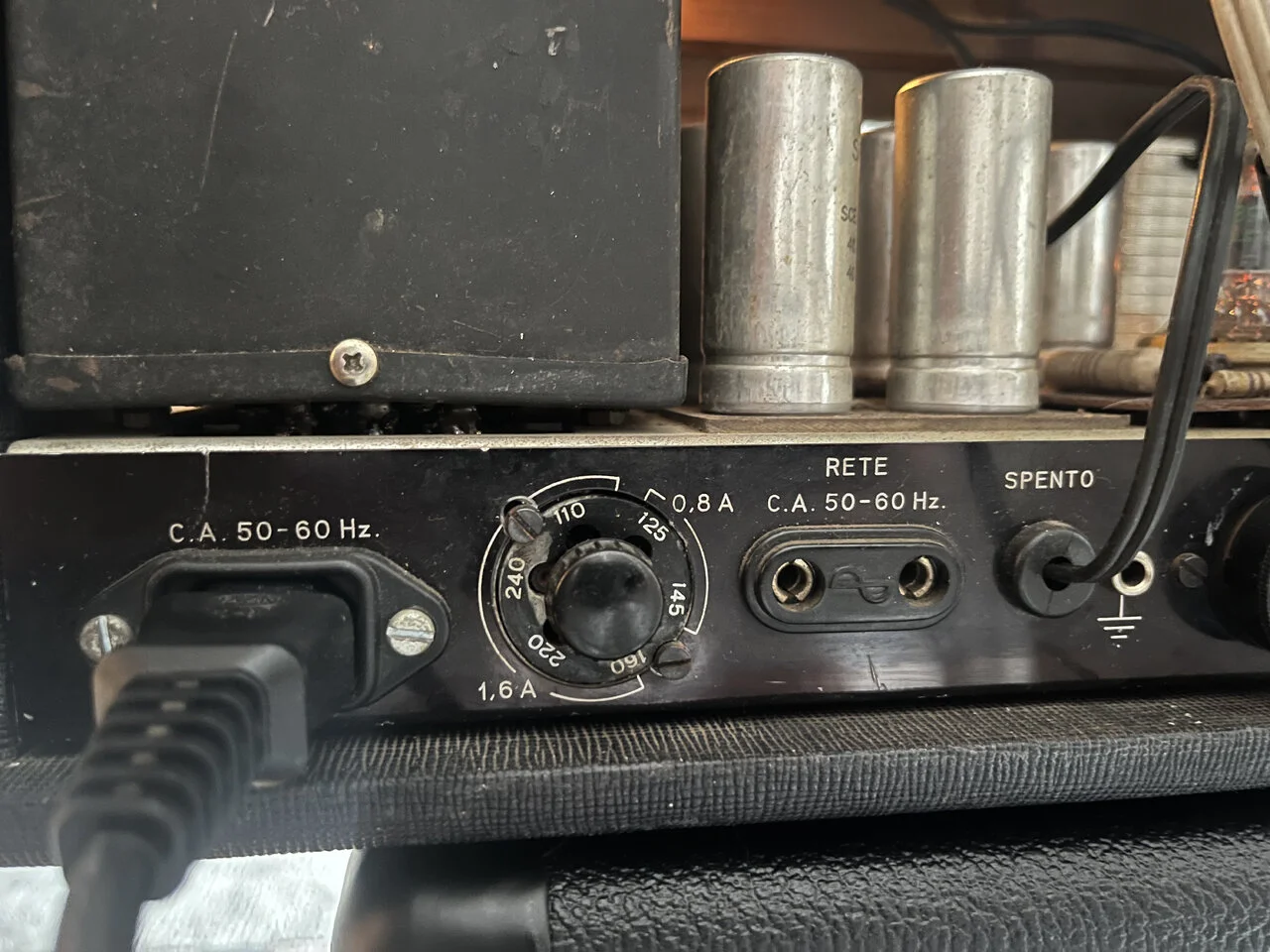 Binson Vollröhren Top, klingt gut, Beide Kanäle funktionieren. Gibt nich so viel Infos. Binson war ein italienischer Studioelektronikhersteller in den 60/70er Jahre, Berühmt für das Echorec, dass auch Pink Floyd nutzten. Der Amp holt aus 2 EL34 40 Watt.