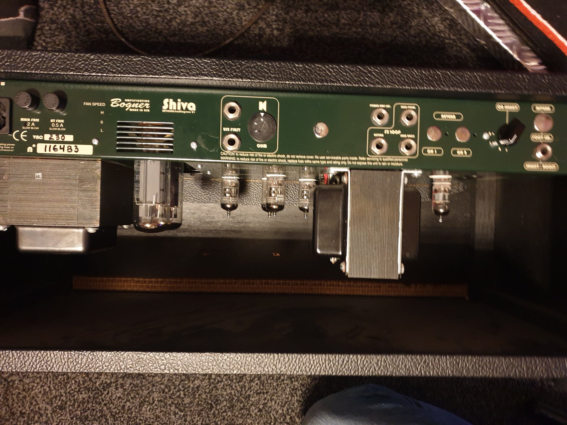 ich biete hier meinen Bogner Shiva Topteil zum Verkauf an. Hier sind EL34 Endstufenröhren verbaut. Ich habe das Topteil 2016 gebraucht gekauft und dieser hat mir seitdem gute Dienste geleistet. Nun ist Zeit für was neues und er darf in ein neues Zuhause: Der Bogner hat zwei Kanäle und im Lead Kanal noch einen Boost. Die Röhren funktionieren alle noch super und der Verstärker klingt