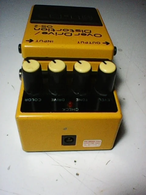 Overdrive bis Distortion. Stufenlose Einstellung der Verzerrung Overdrive bis Distortion. Tone Regler, Ausgangspegel. Elektronischer Bypass.