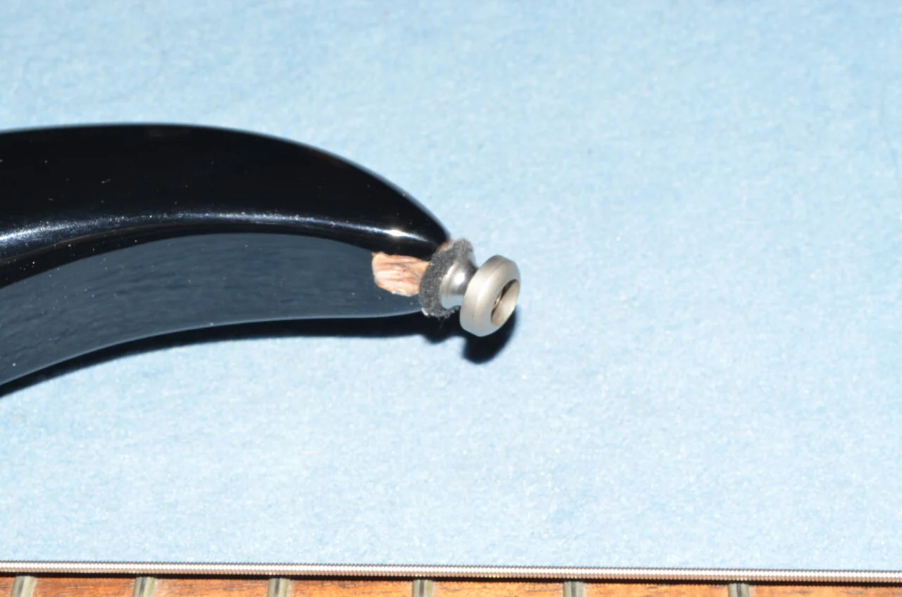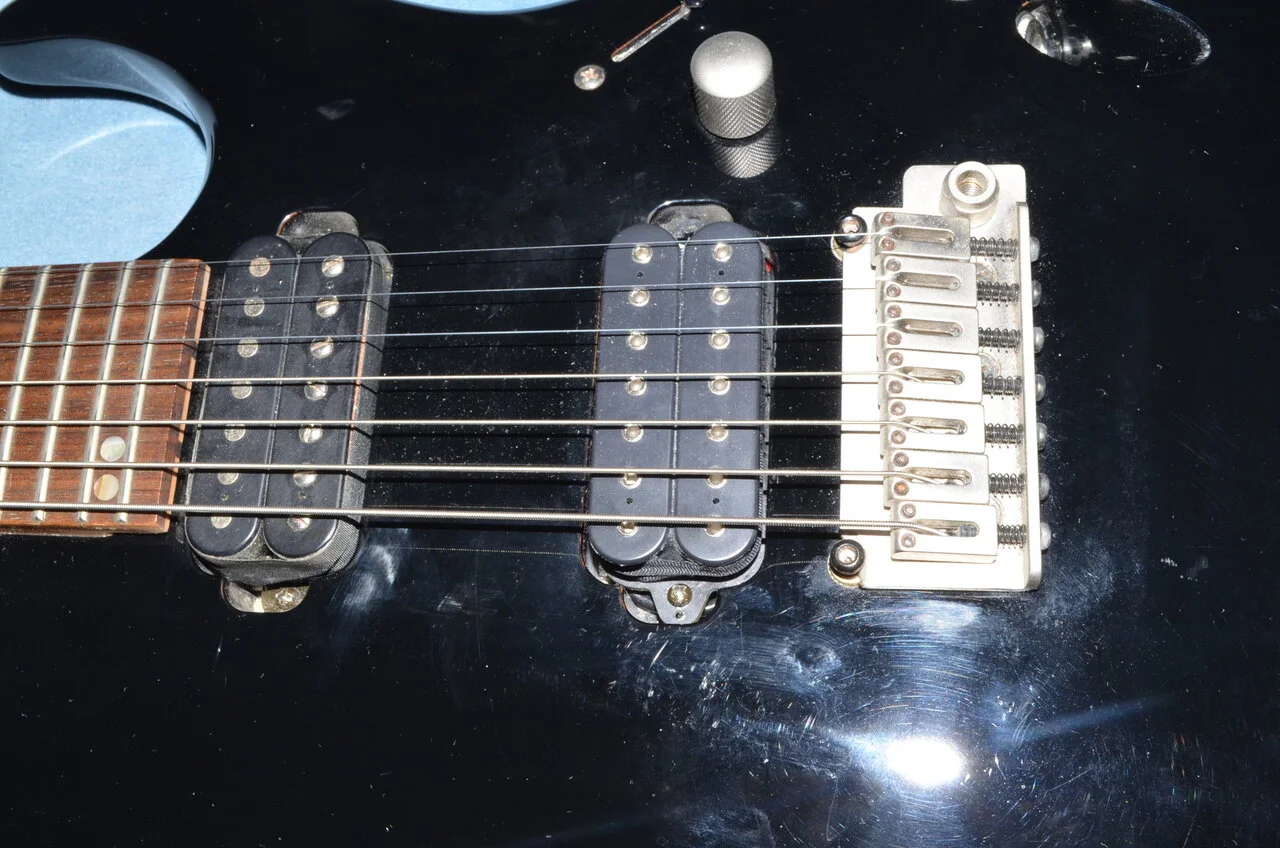 Den Stegtonabnehmer fand ich etwas matt, daher hatte ich am Steg einen DiMarzio DP704 eingebaut. Das hat einiges an Klarheit im Sound gebracht. Der originale Tonabnehmer wird mitgeliefert.