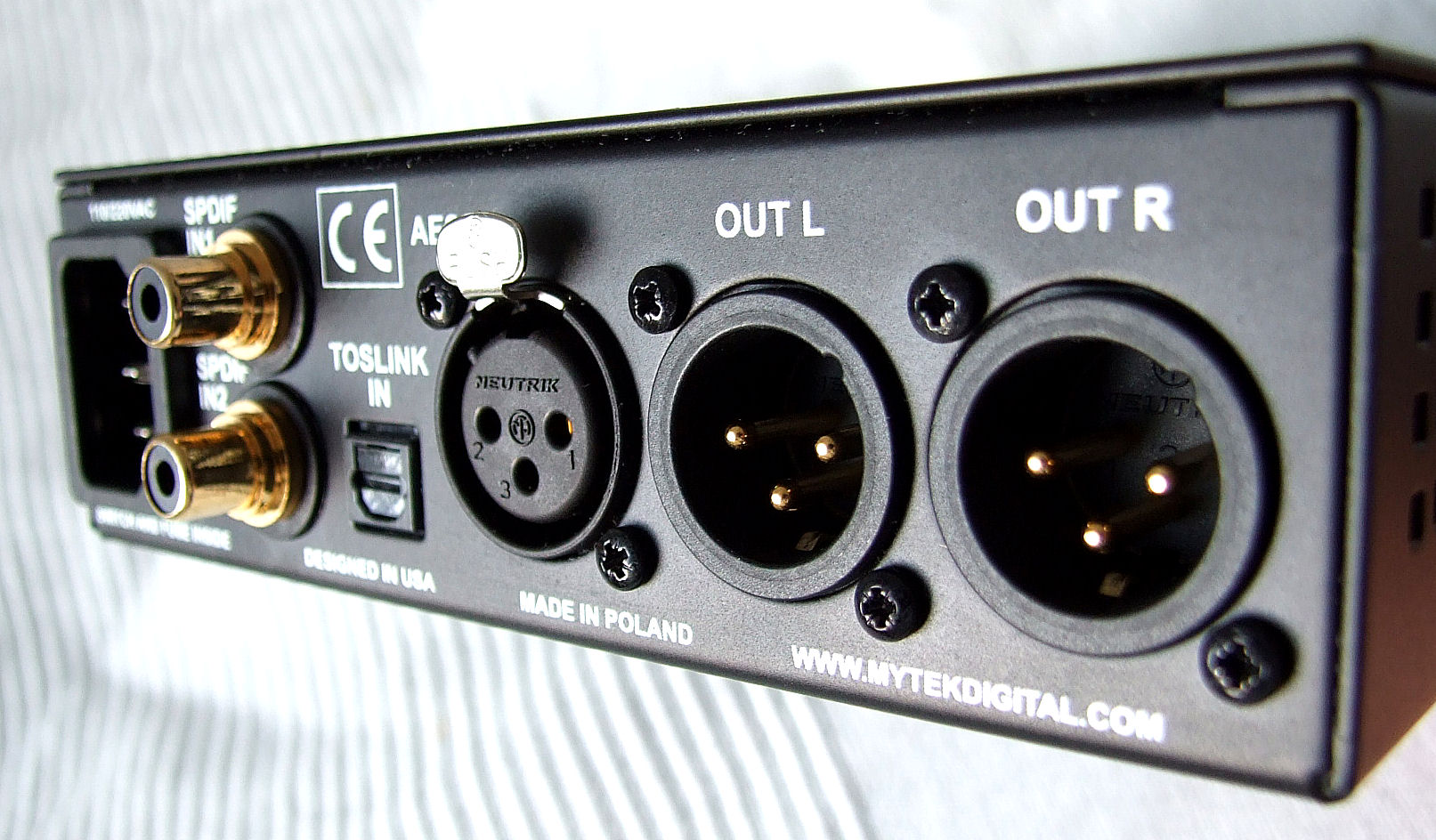 digitaler Stereo-Eingang: AES/EBU und SPDIF (Cinch und TOSlink); Quelle auswählbar