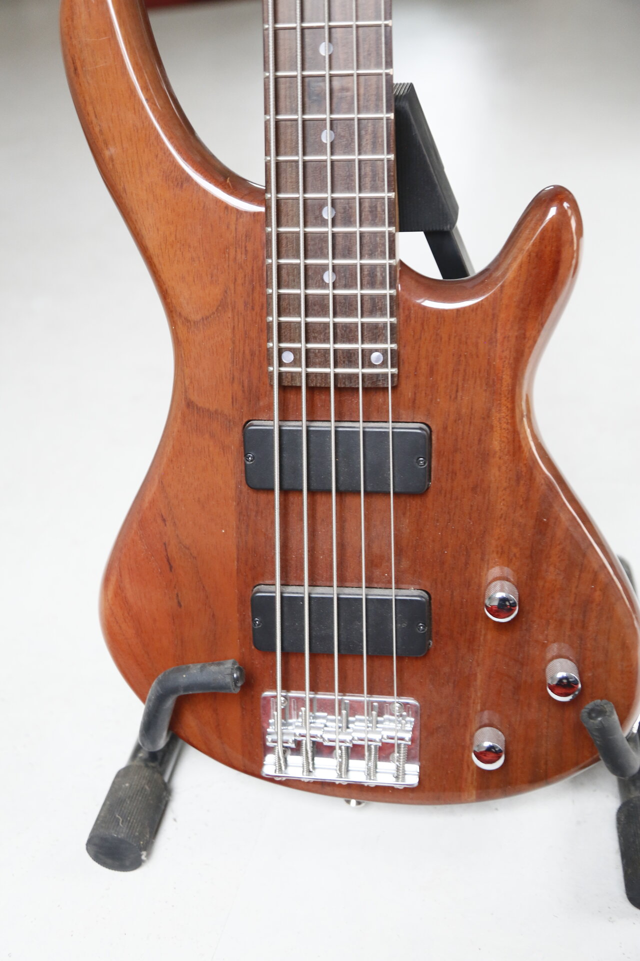 Der Bass ist vielleicht zehnmal gespielt worden und in tadellosem Zustand, die Bünde sind wie neu und der Hals ist optimal eingestellt. Eine Tasche ist dabei.