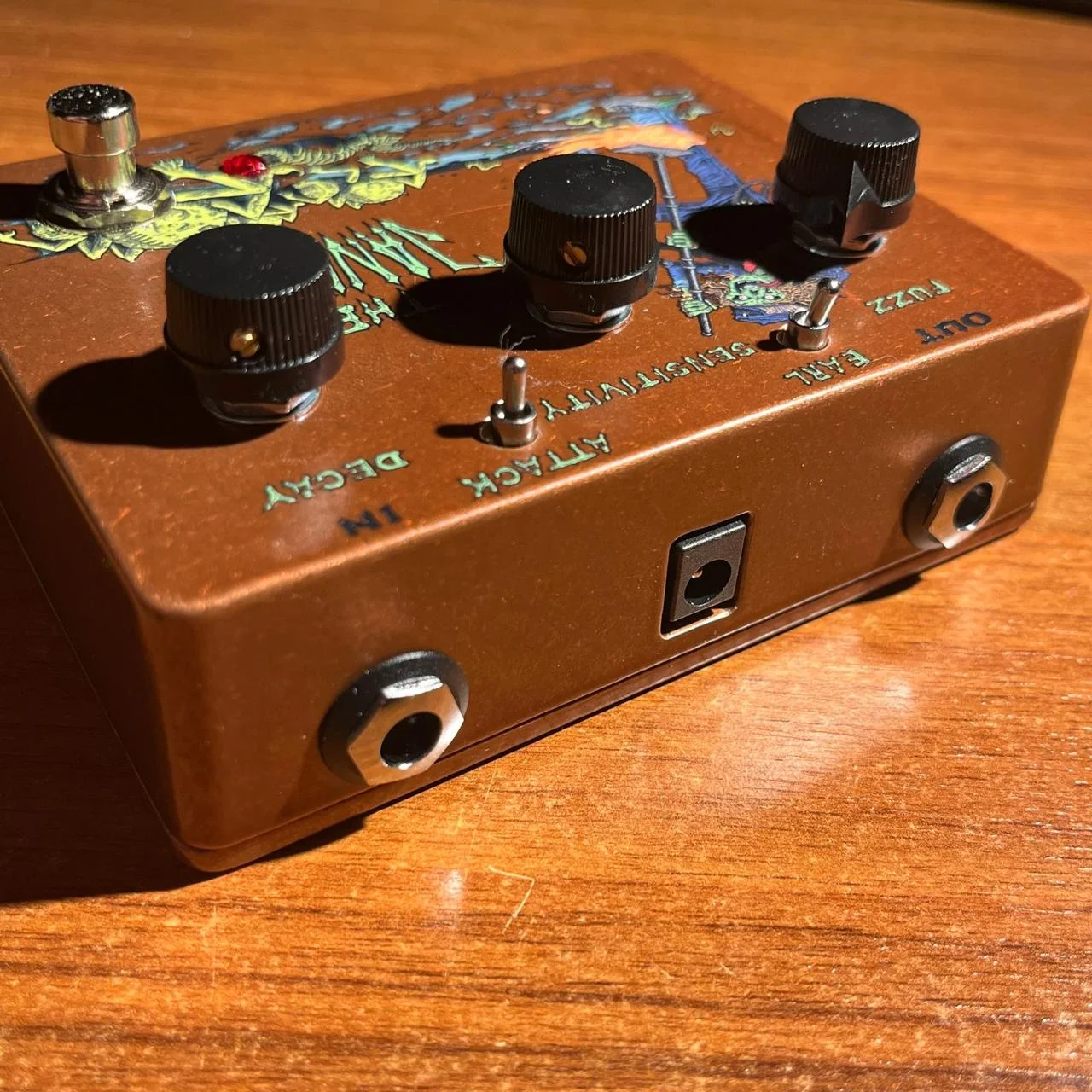 Kombination aus mehreren Fuzz Schaltungen von Vintage bis gated Fuzz plus dynamischer Wah Effekt der auf Spielweise reagiert