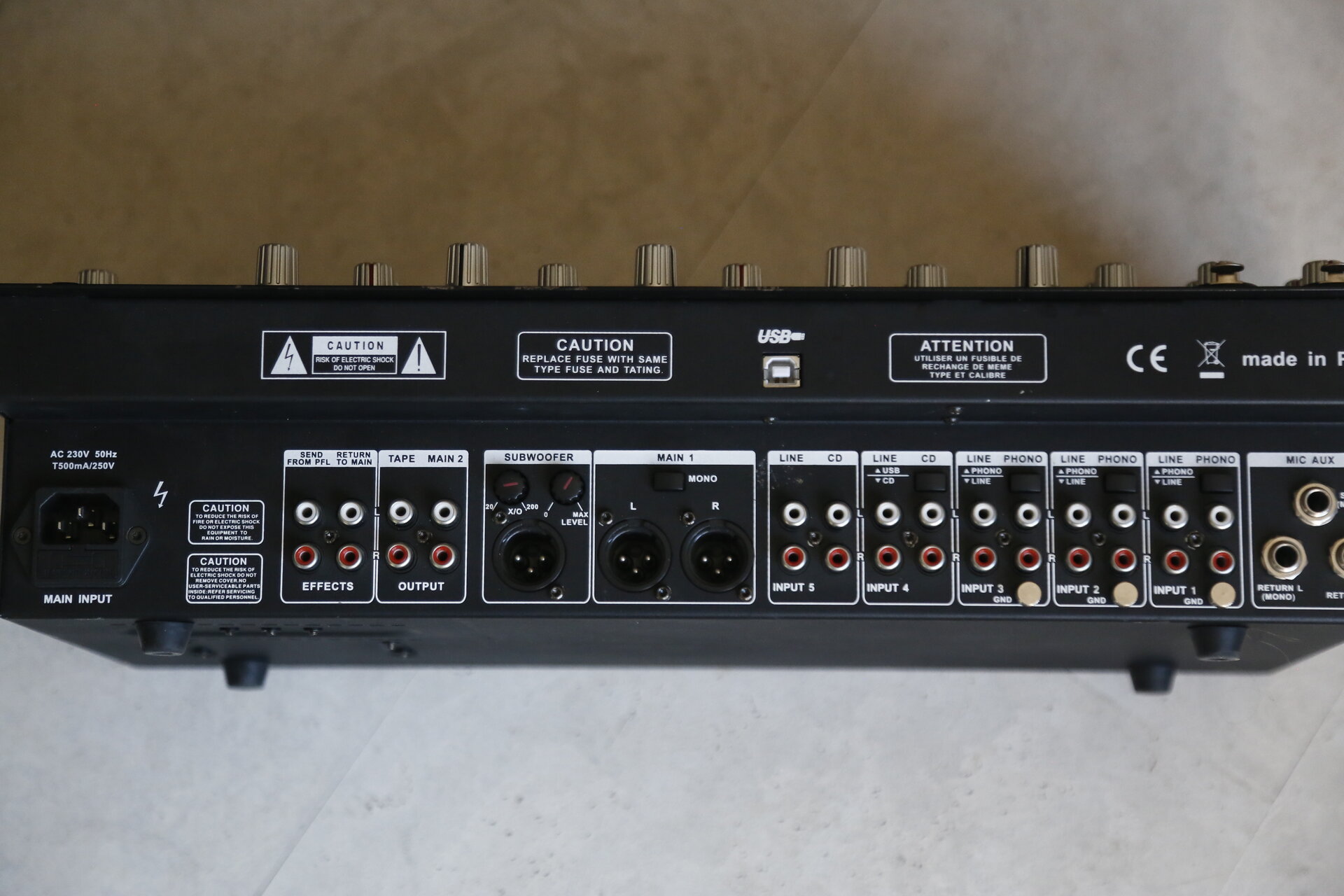 Main Out (XLR) Mono schaltbar, Sub Out regelbar mit Crossover 20 - 200 Hz, Mainout 2 und Tape separate Regelung (Cinch), Effekt Insert
