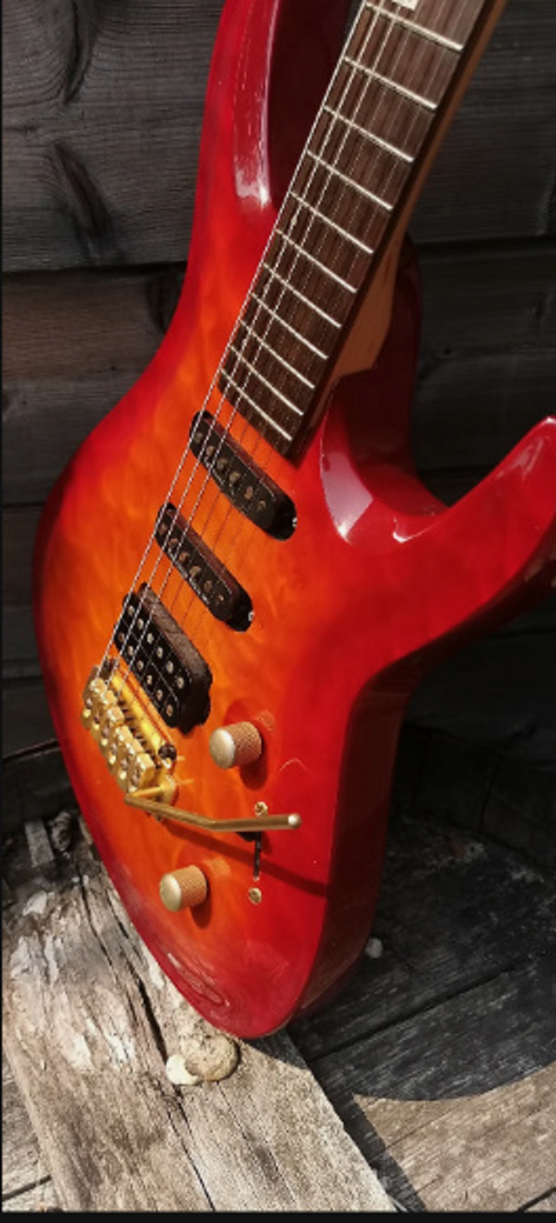 Im Angebot eine wunderschöne Cort S2900, ein Spitzenmodell aus dem Custom Shop Korea (1999). Dies ist ein sehr seltenes Exemplar mit umgekehrter Kopfplatte, die in sehr kleinen Stückzahlen hergestellt wurde.