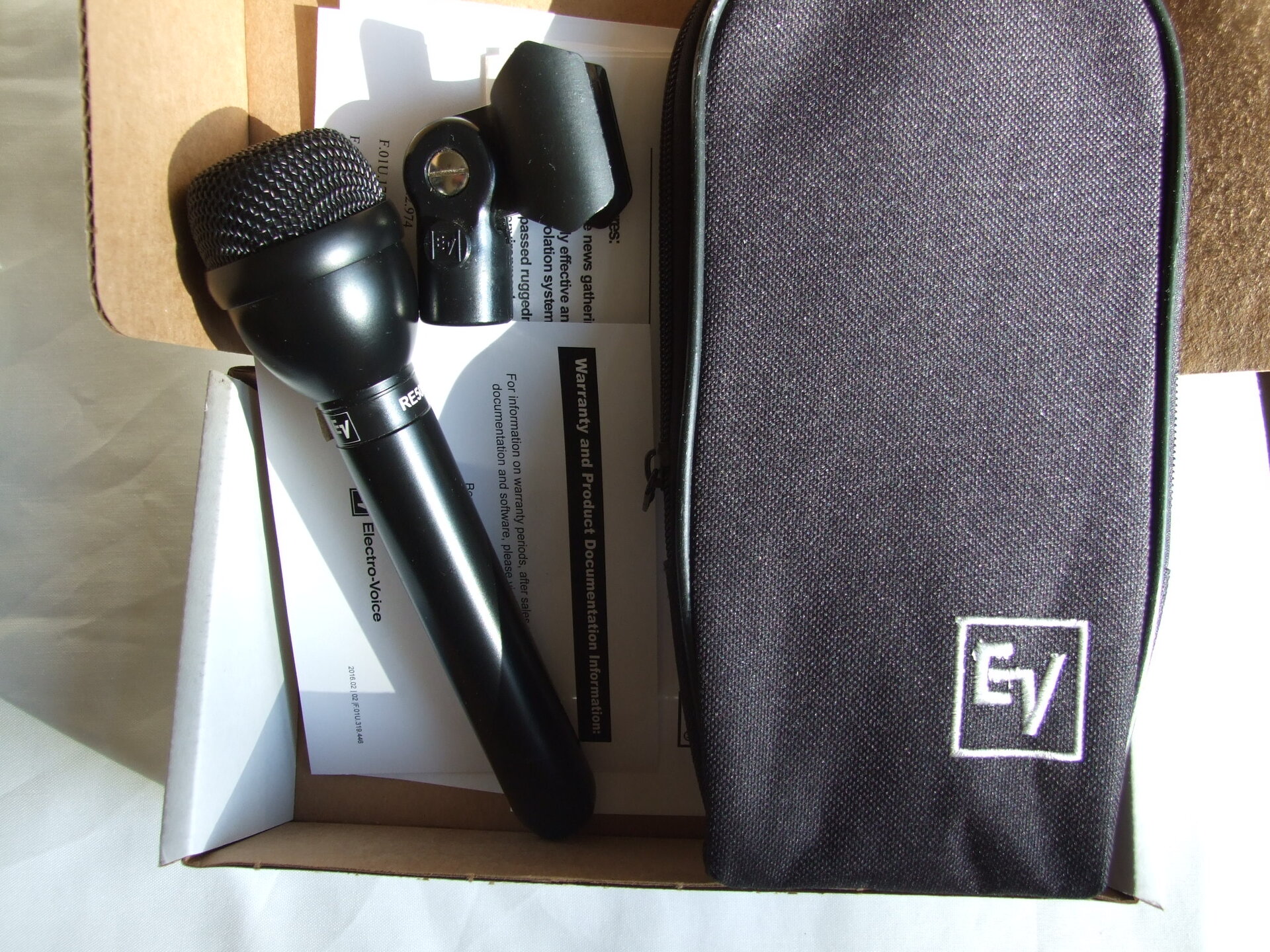 Das Mikrofon ist technisch 1a und optisch 1c (kaum Gebrauchsspuren, aber ein Ende der Banderole hat sich etwas abgelöst). Der Mikrofonkorb und dessen Schaumstoffeinlage sind nicht verschmutzt.
