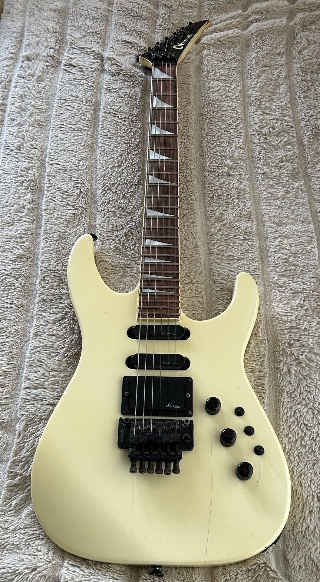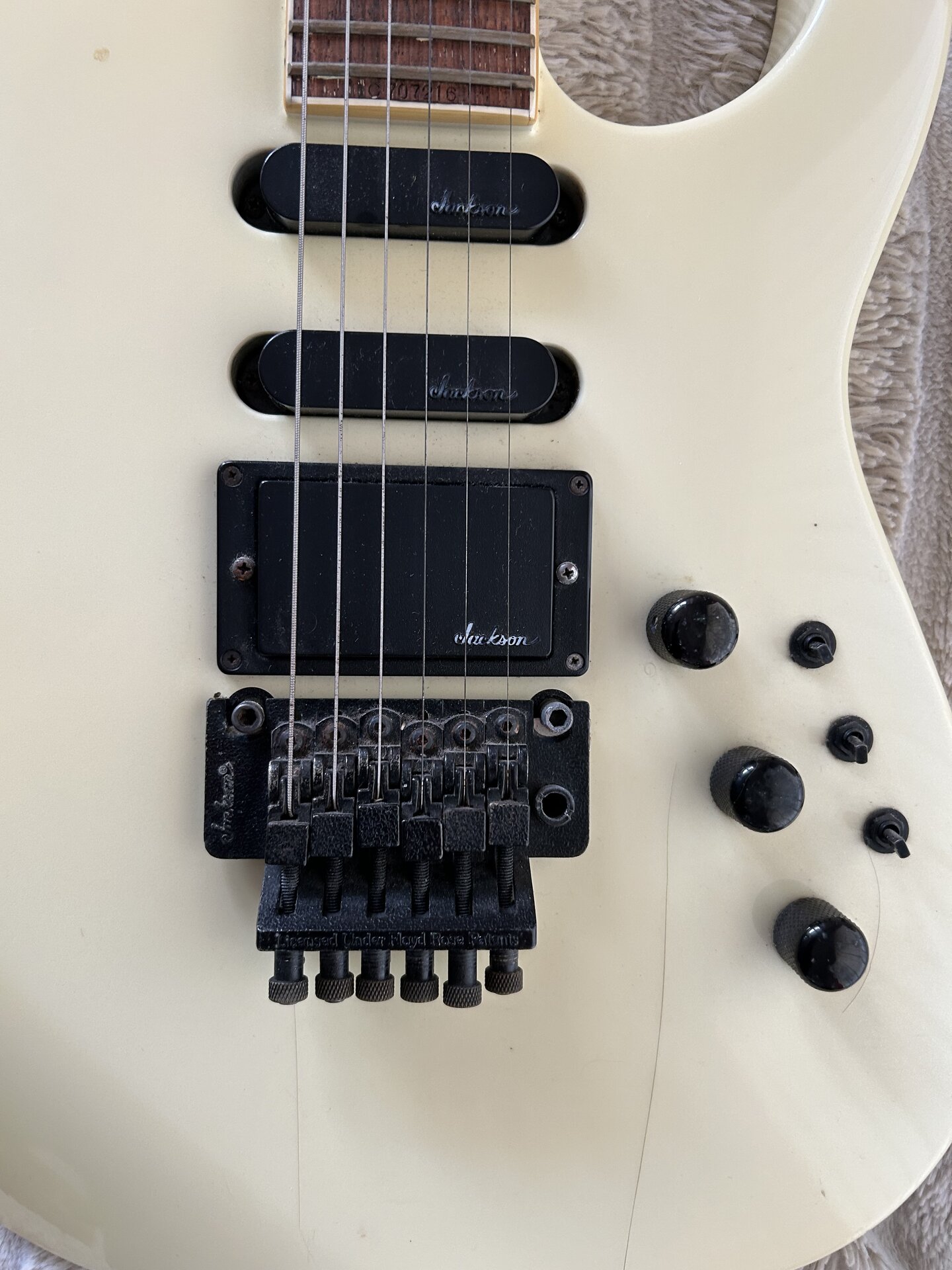 • Tremolo: 1986er Modelle hatten ein Kahler 2300 Pro Vibrato, ab 1987 dann das Jackson JT6 Floyd Rose Tremolo.