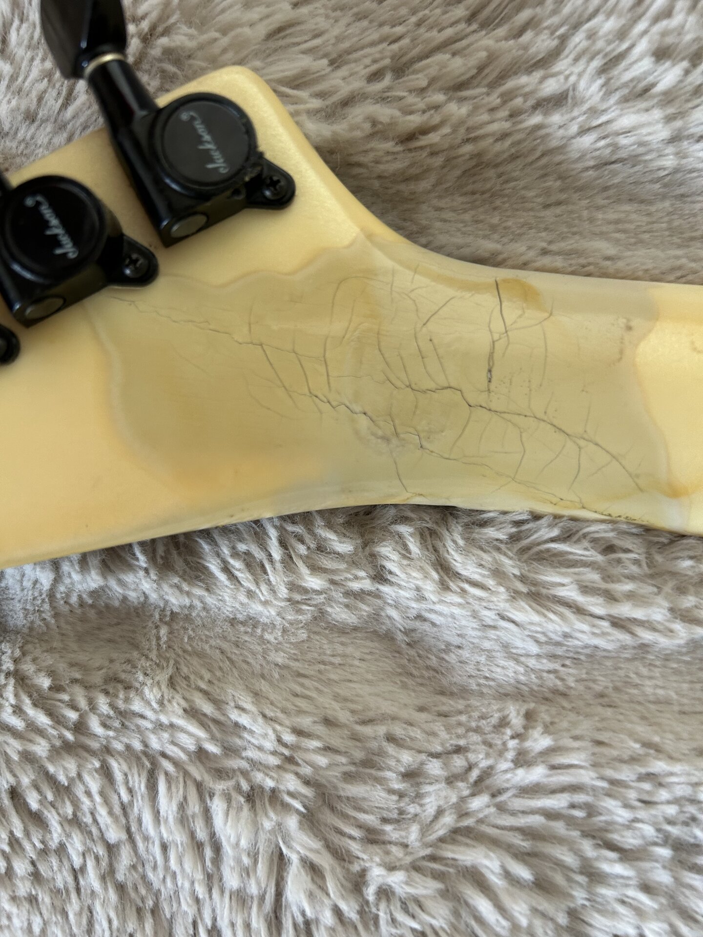 Der Hals ist in den 90er Jahren einmal gebrochen und wurde in einer Fachwerkstatt für Gitarrenbau professionell repariert!