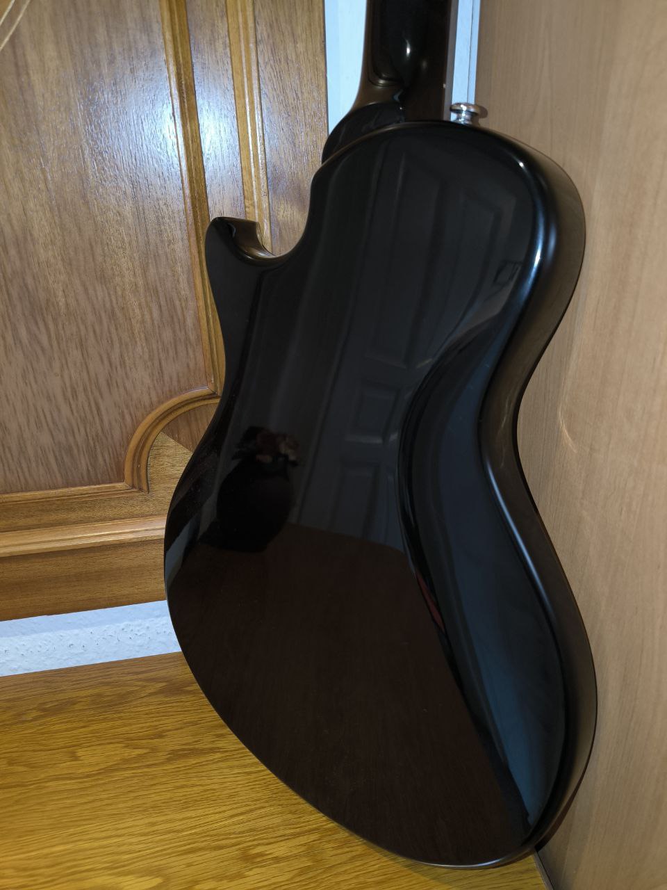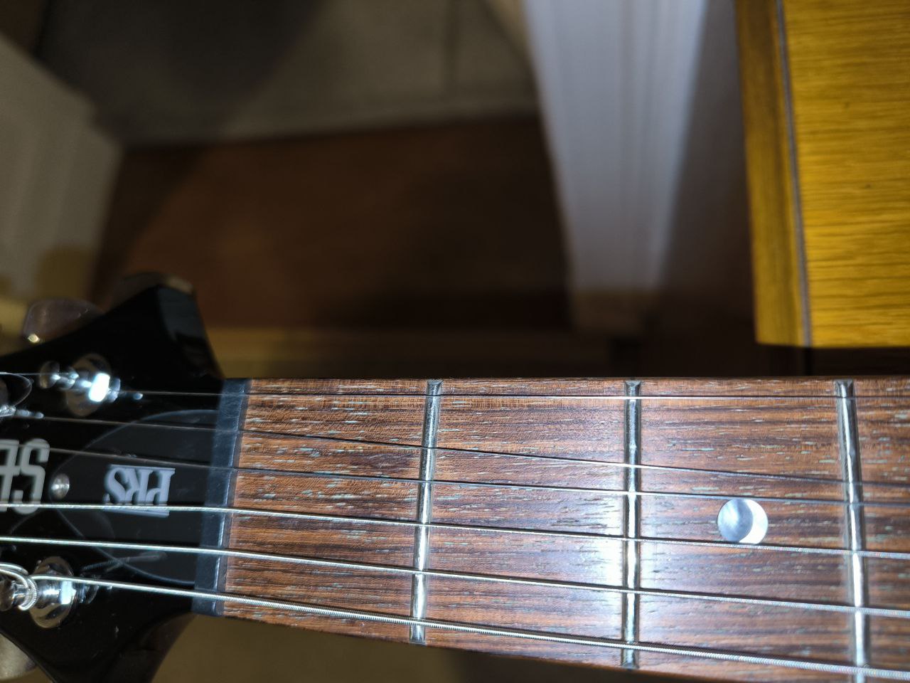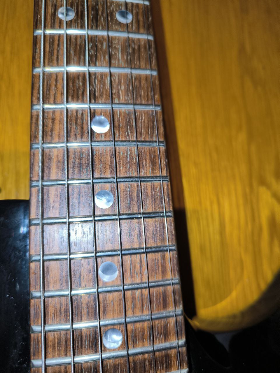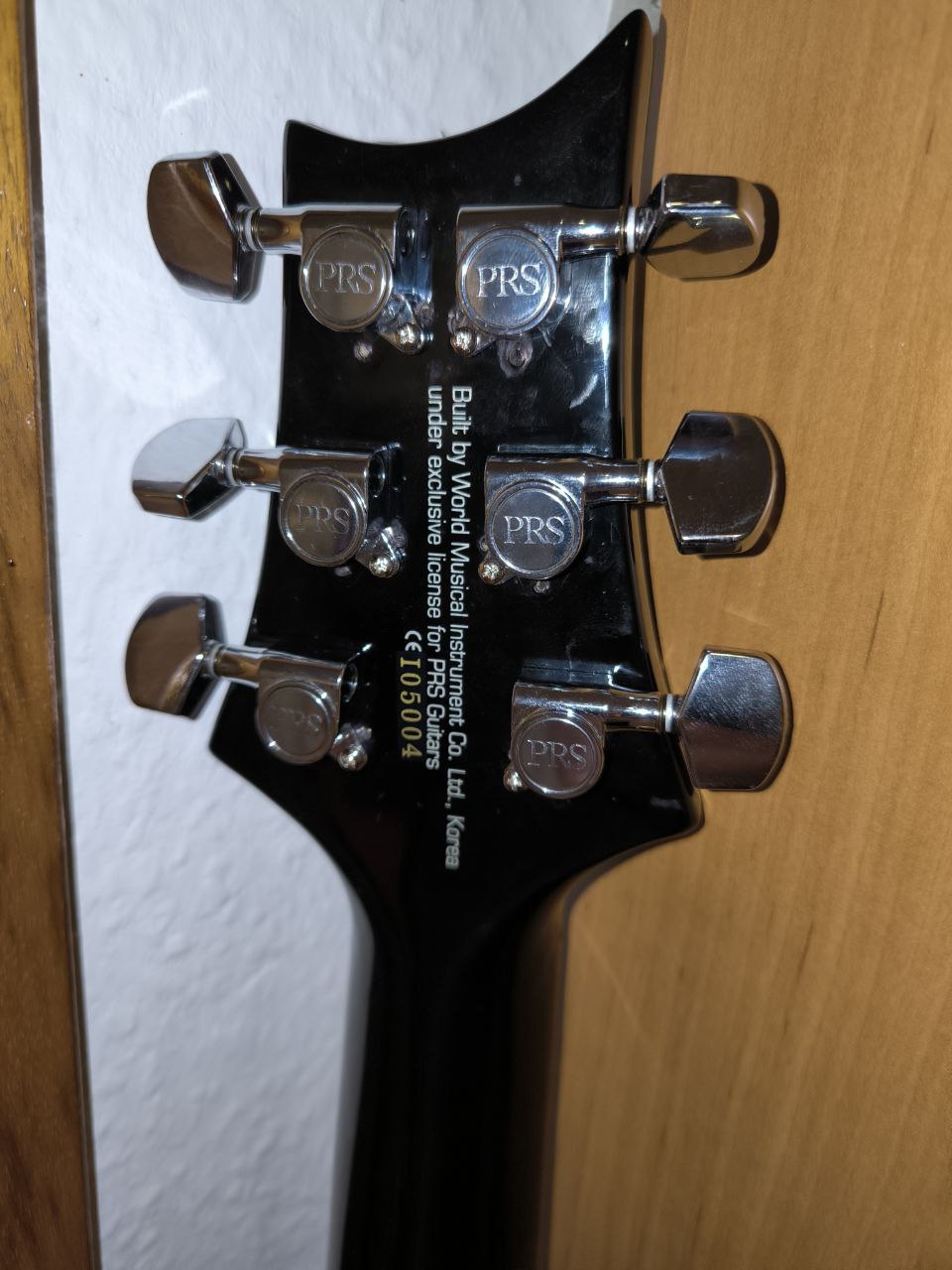 Mit kleinen Gebrauchsspuren. Neben den Tunern befinden sich kleine Löcher von der Nicht-Originalmechanik. Kosmetischer Nachteil.