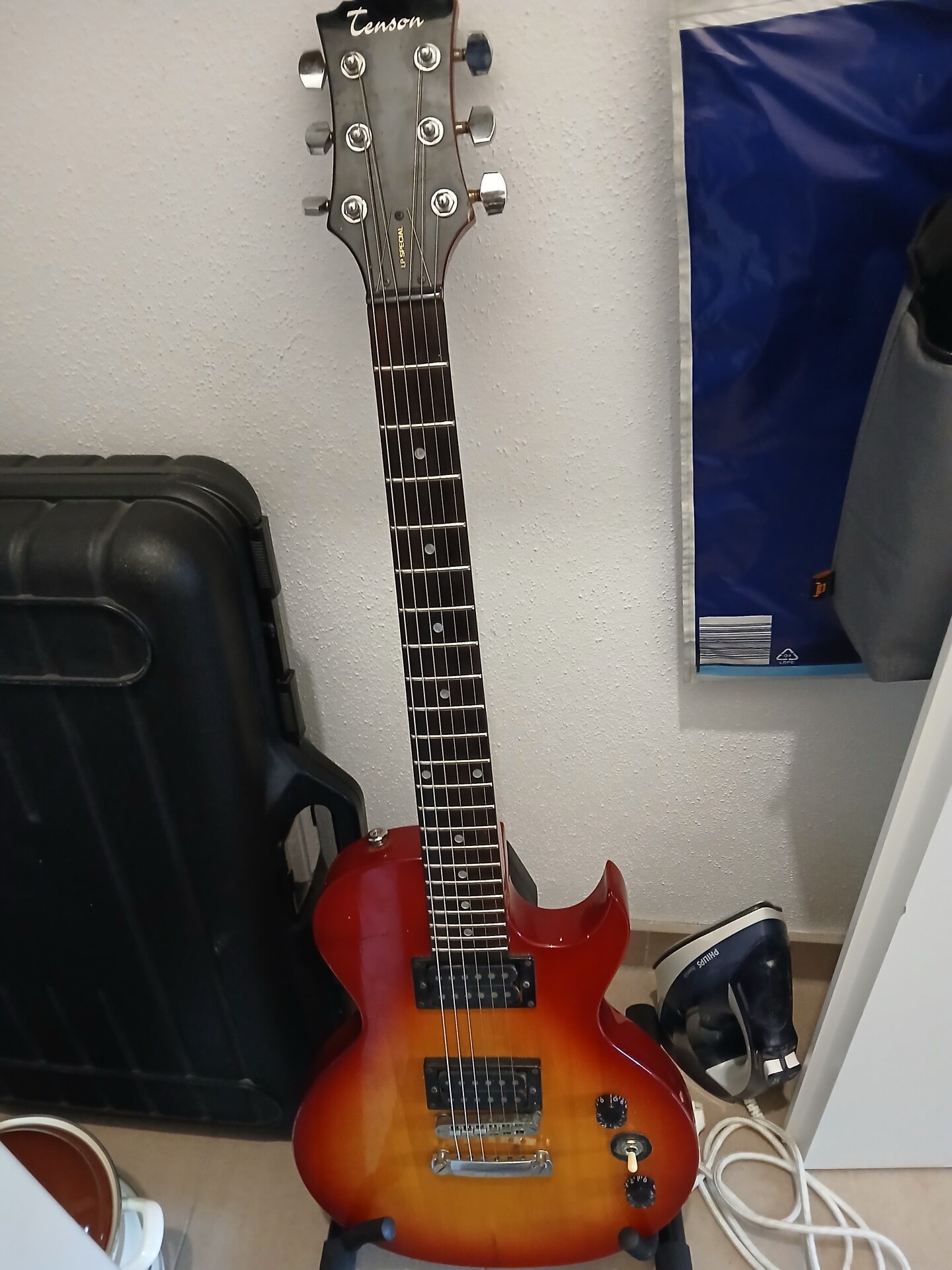 Zum Verkauf steht eine E-Gitrarre der Marke Teson mit Verstärker
