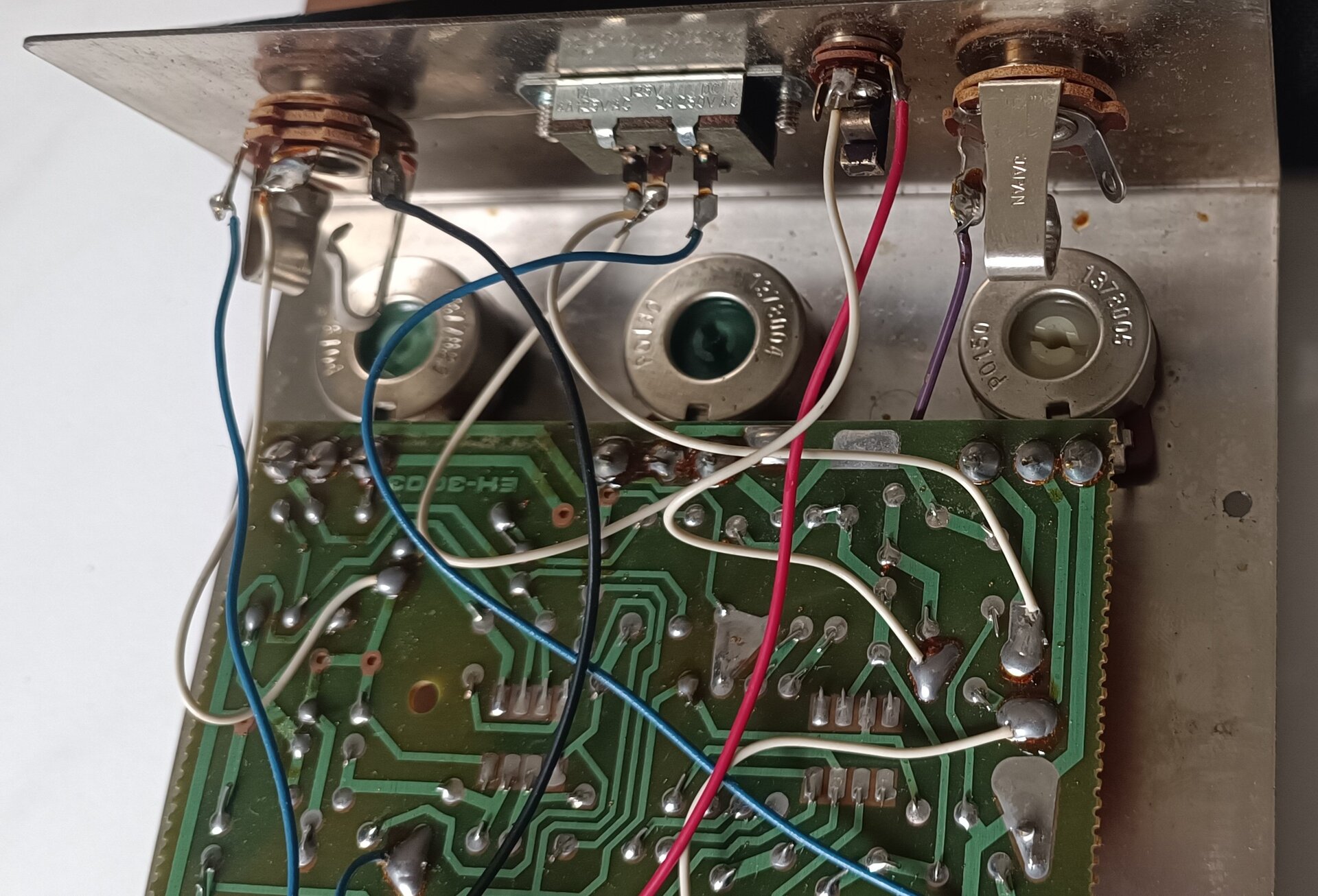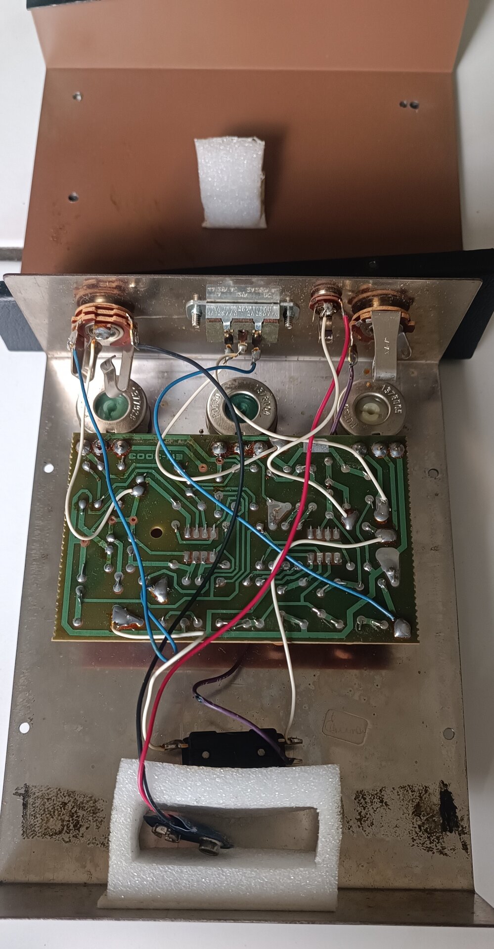 Der Verzerrer hat Gebrauchsspuren (auf der Unterseite fehlen zwei Gummifüßchen - evtl. waren dort aber auch mal andere Füßchen befestigt) befindet sich aber - insbesondere wenn man das Alter berücksichtigt - in gutem Zustand.