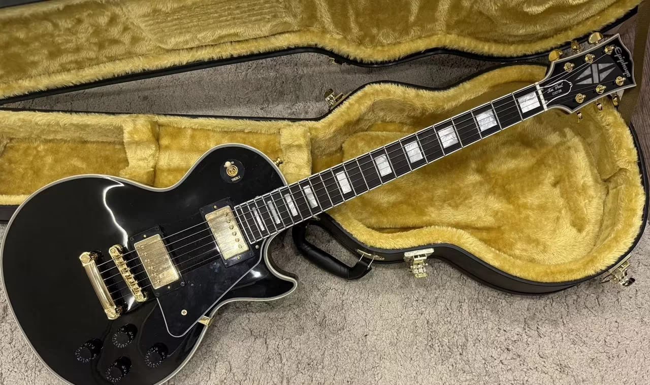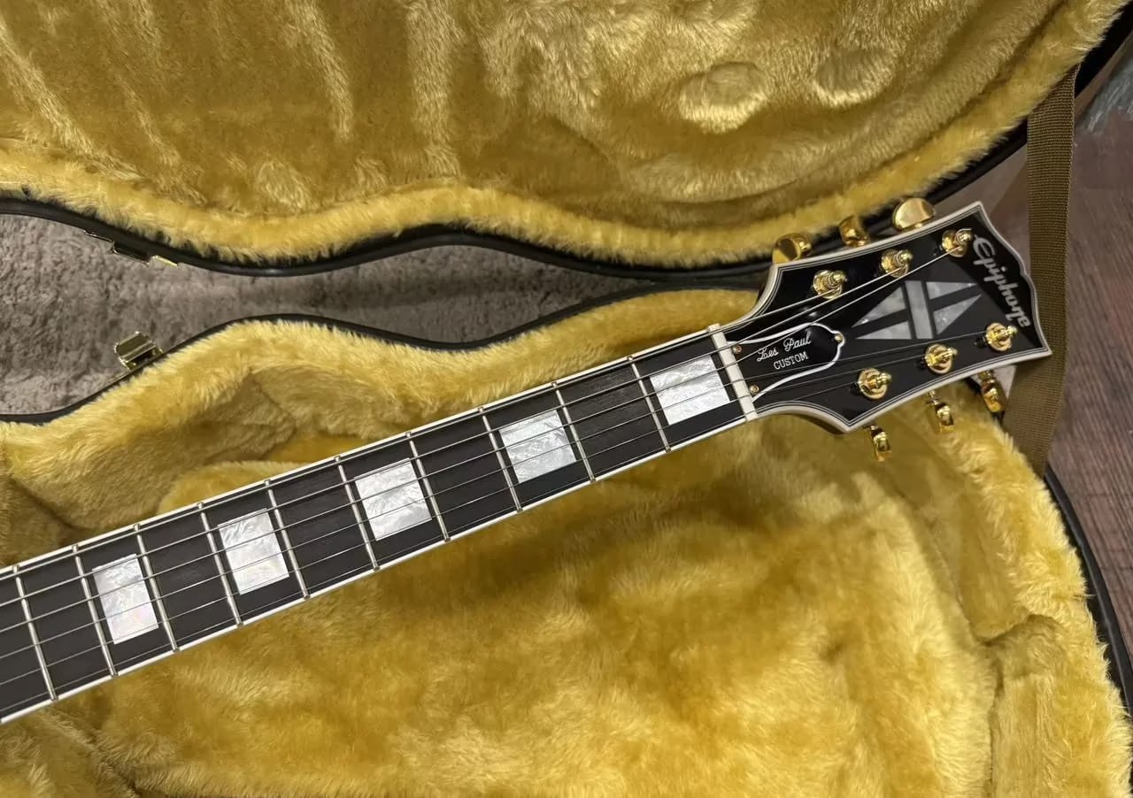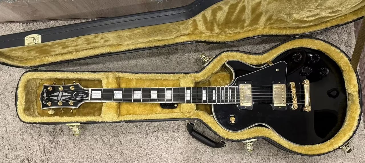 Verkaufe hier meine Epiphone Les Paul Custom IGC – ein richtig feines Teil, perfekt für alle, die den klassischen Les-Paul-Sound mit edlem Look wollen.