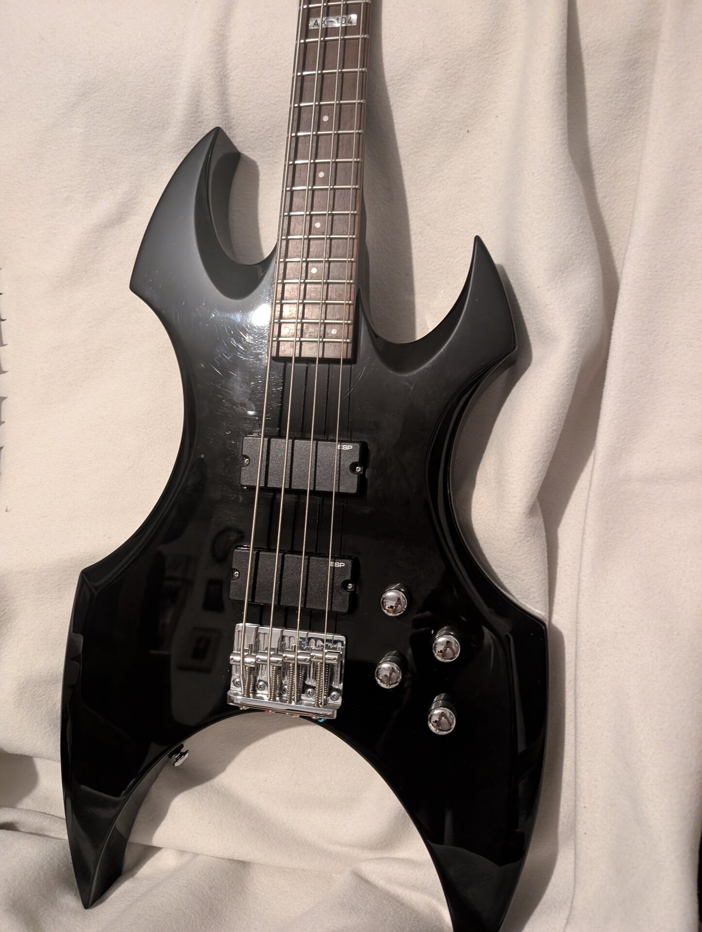 Der Bass hat eine markante Körperform und ist perfekt für Rock, Metal oder andere Musikrichtungen geeignet: