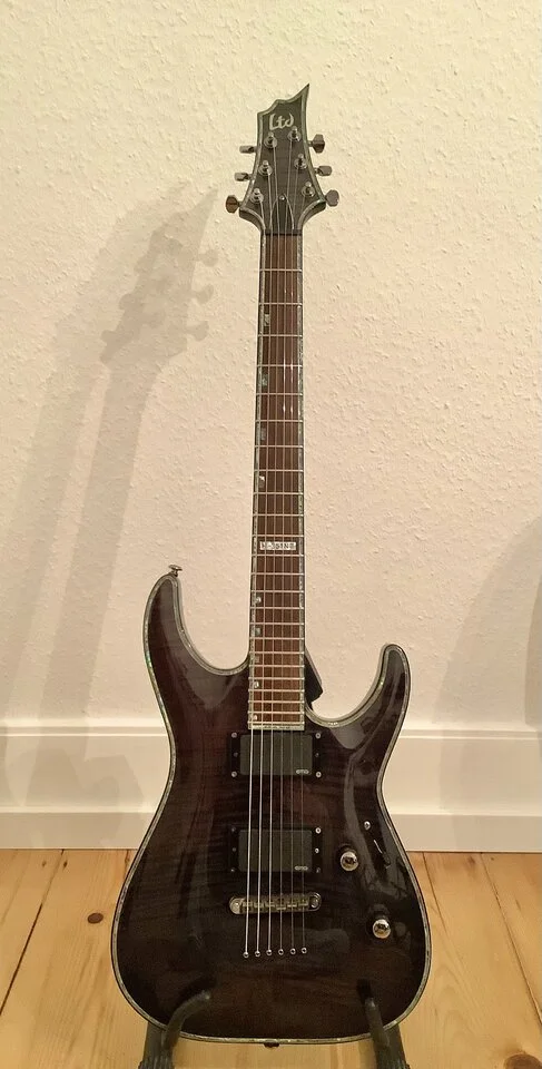 - Griffbrett: Palisander, mit Custom ESP "Offset Block" Inlays