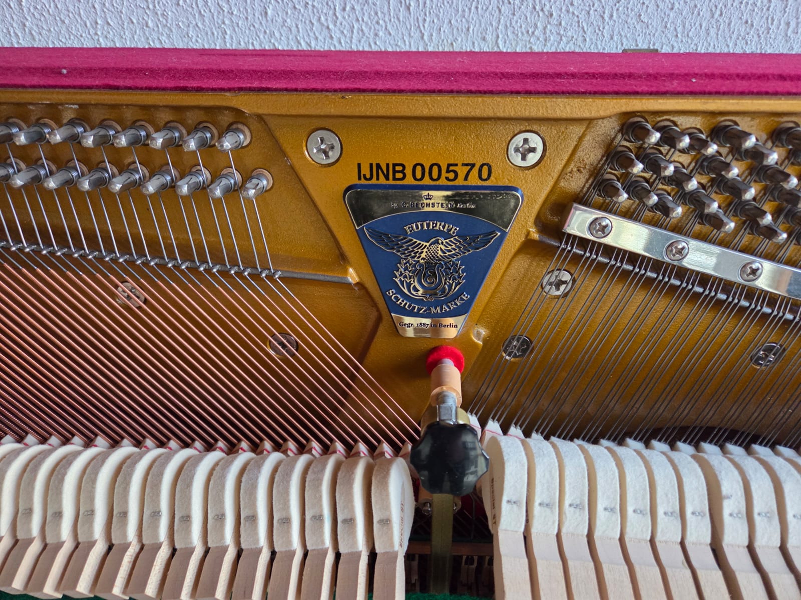 Das Klavier wurde privat genutzt und stand in einem Nichtraucherhaushalt. In den letzten 15Jahren wurde es nur gelegentlich gespielt und überwiegend als hochwertiger Einrichtungsgegenstand genutzt. Es ist spielbereit, jedoch stimmbedürftig, da die letzte Stimmung vor etwa 15 Jahren erfolgte. Die Tasten F4 und G5 hängen gelegentlich leicht und sollten im Rahmen einer regulären Wartung überprüft werden. Die Tasten sind jedoch weiterhin problemlos spielbar.