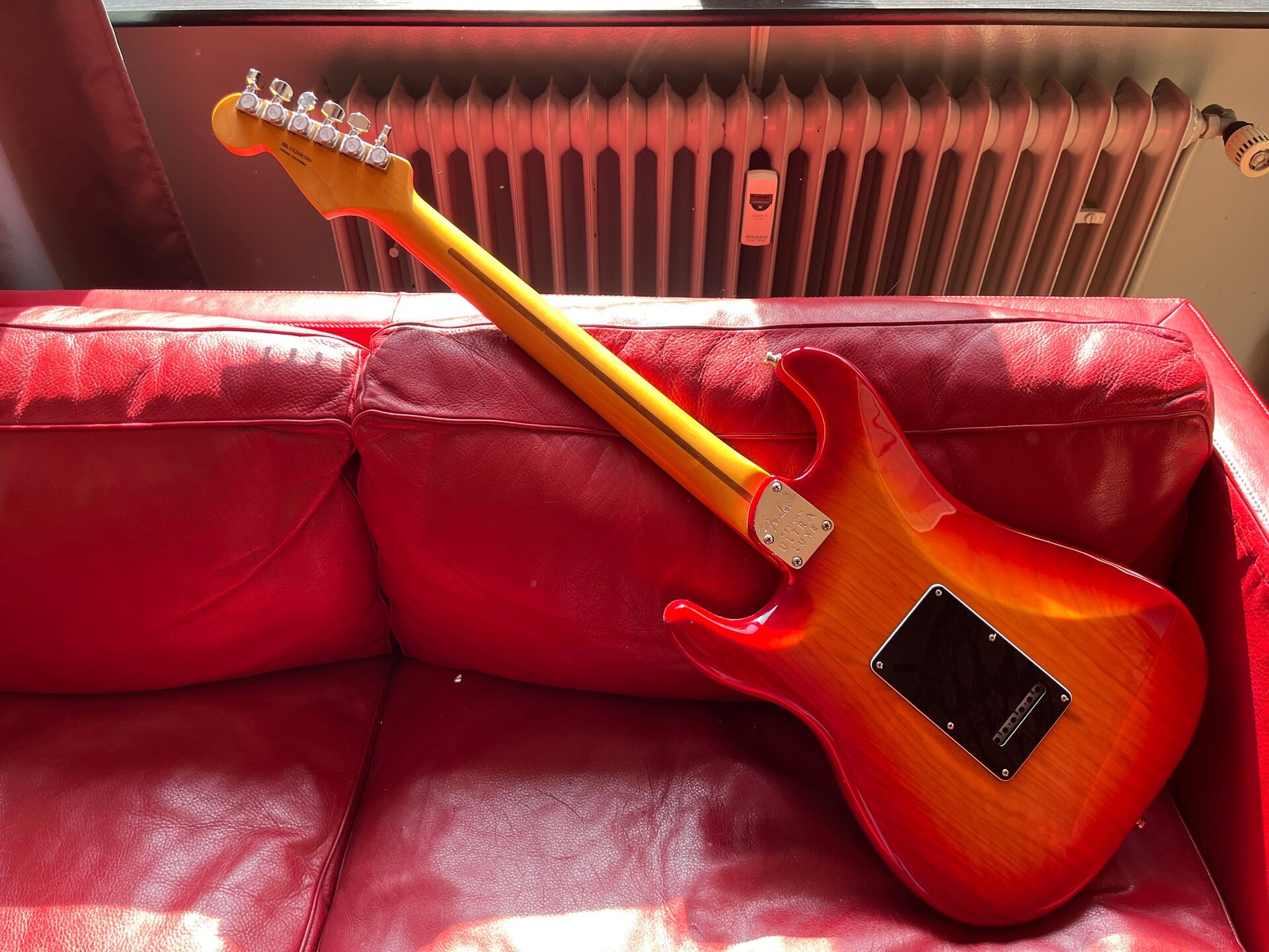 Fender American Ultra Strat MN – Plasma Red Burst inkl. Case