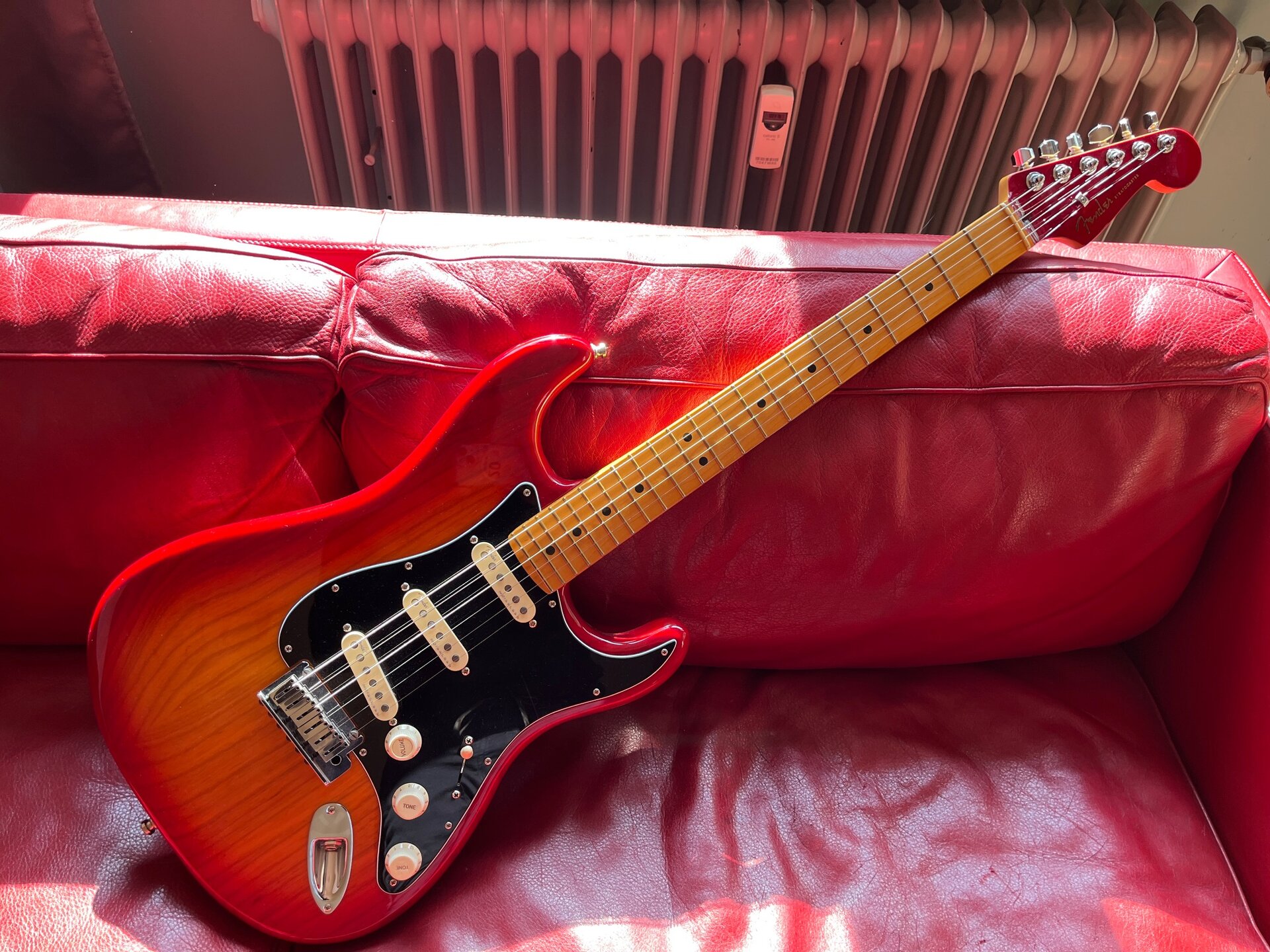 Ich verkaufe meine Fender American Ultra Stratocaster in Plasma Red Burst aus Erstbesitz.