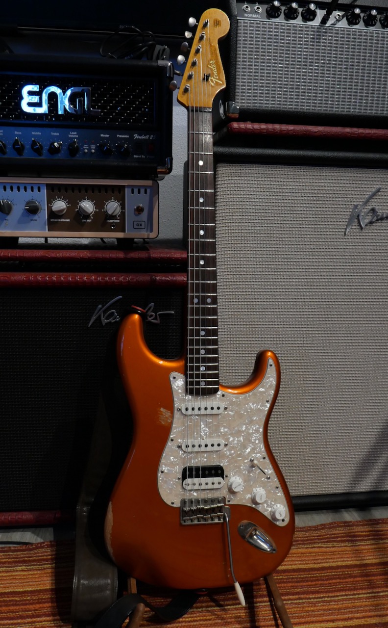Das Tangerine hat einen gewissen Glitzer und in Verbindung mit dem Griffbrett ist die Gitarre recht auffällig! Das Relic auf der Vorderseite und Zarge finde ich sehr gelungen, das der Rückseite nicht wirklich. Allerdings ist das definitiv kein Grund sie nicht zu spielen oder herzugeben - erst beim Foto machen habe ich mich überhaupt daran erinnert.