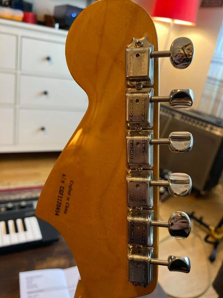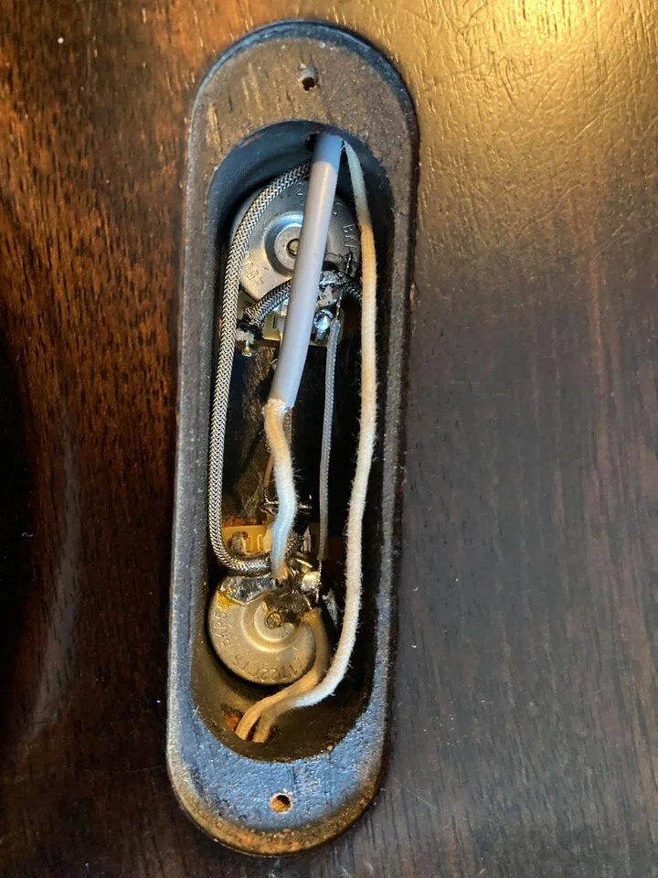 Das heißt sämtliche Mechaniken wurden durch gescheite ersetzt und neue Tonabnehmer mit gemachten CTS Potis wurden eingebaut.