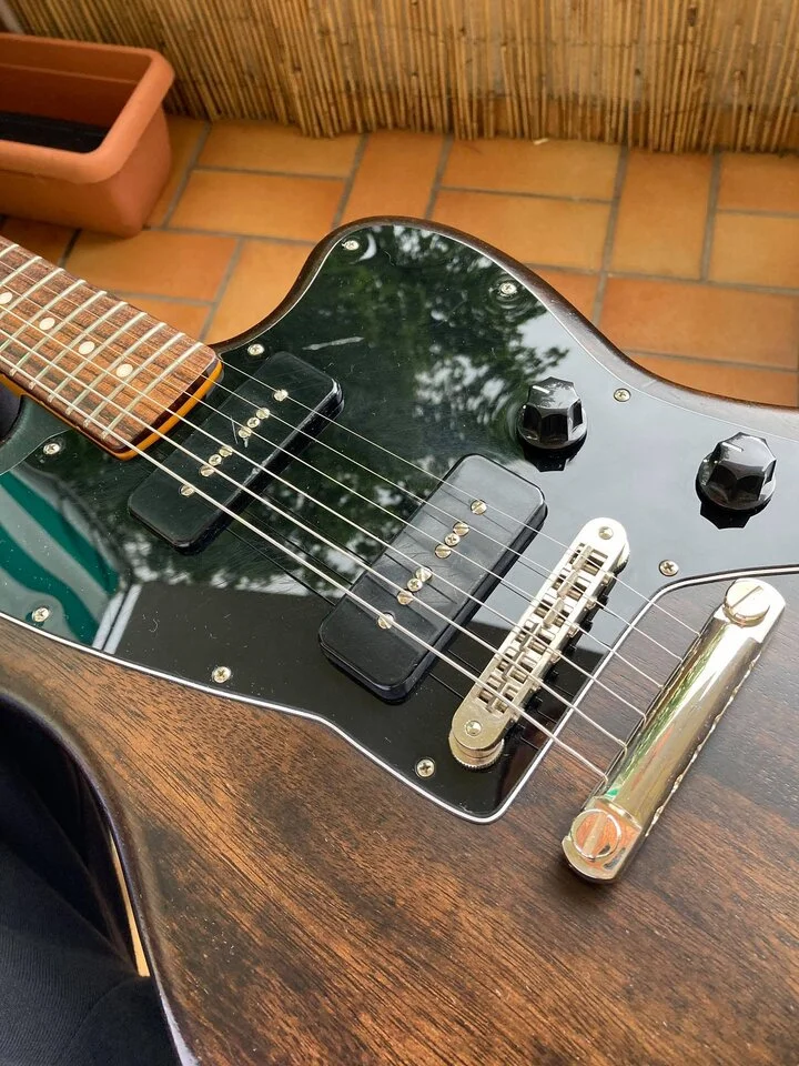 Der Hals und Mahagoni-Korpus sind Original. Lediglich die billige Elektronik/Mechanik (Potis, Toggle, Pickups, Tuner,...) wurde komplett getauscht!