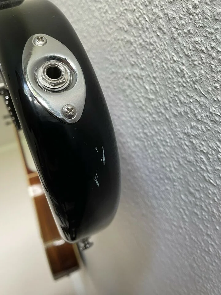 Die Gitarre ist praktisch neu und bis auf eine Macke neben der Buchse (siehe Fotos) in einem super Zustand. Sogar die Folie ist noch auf dem Pickguard.
