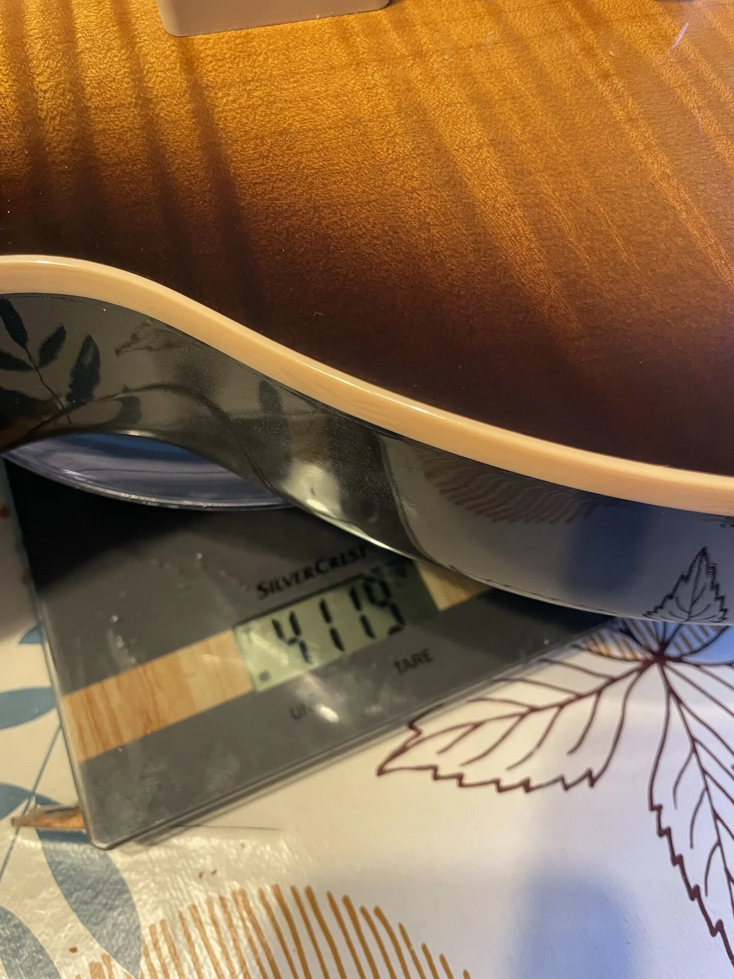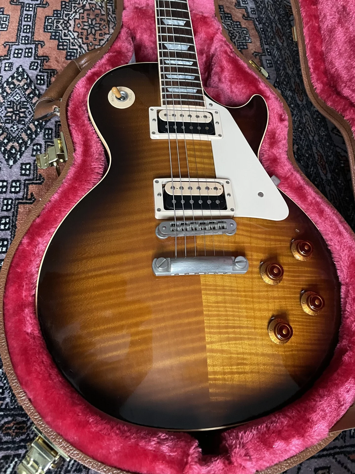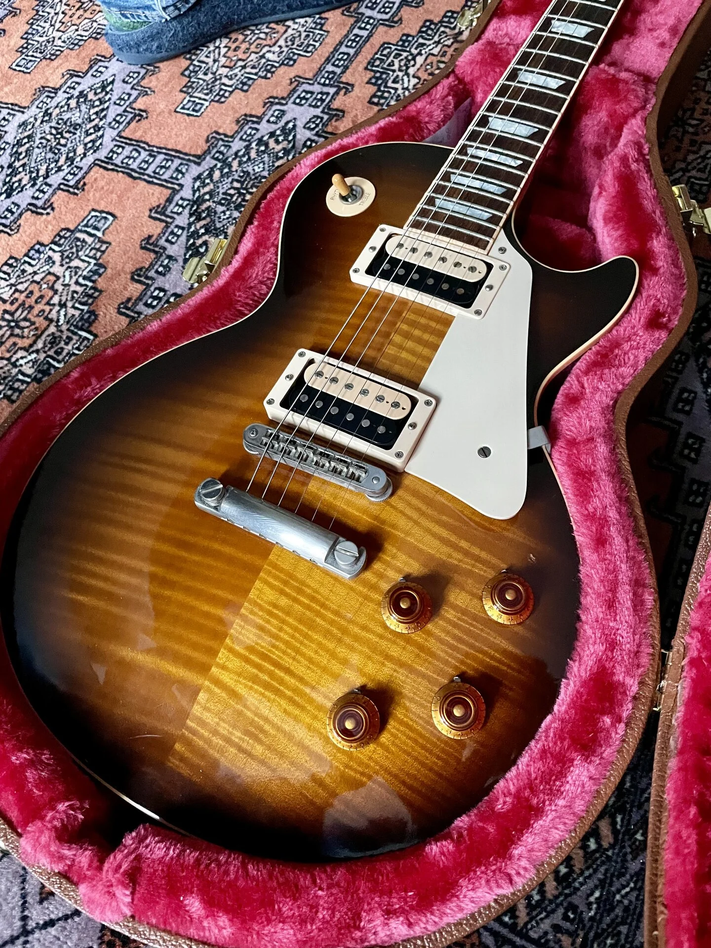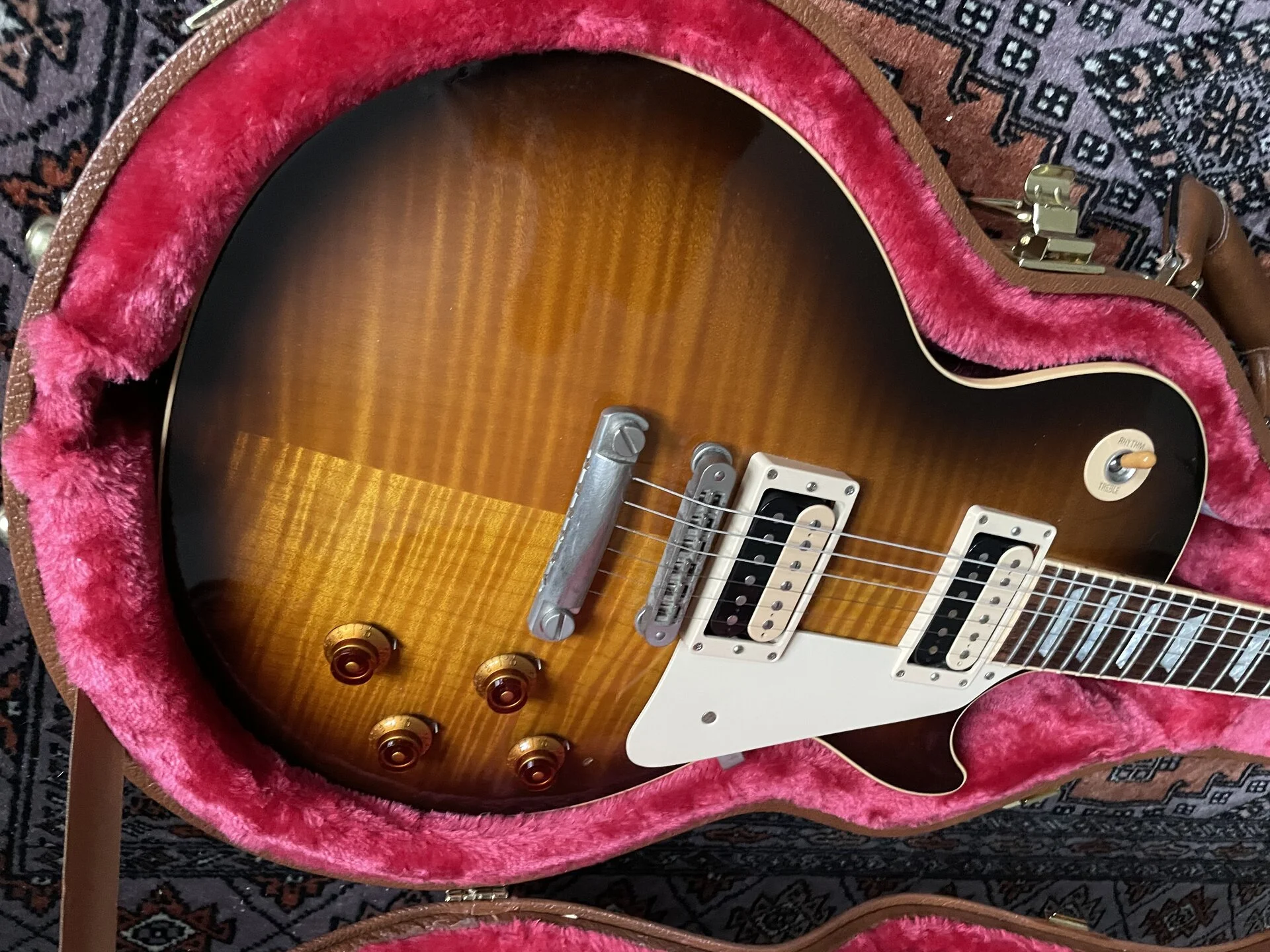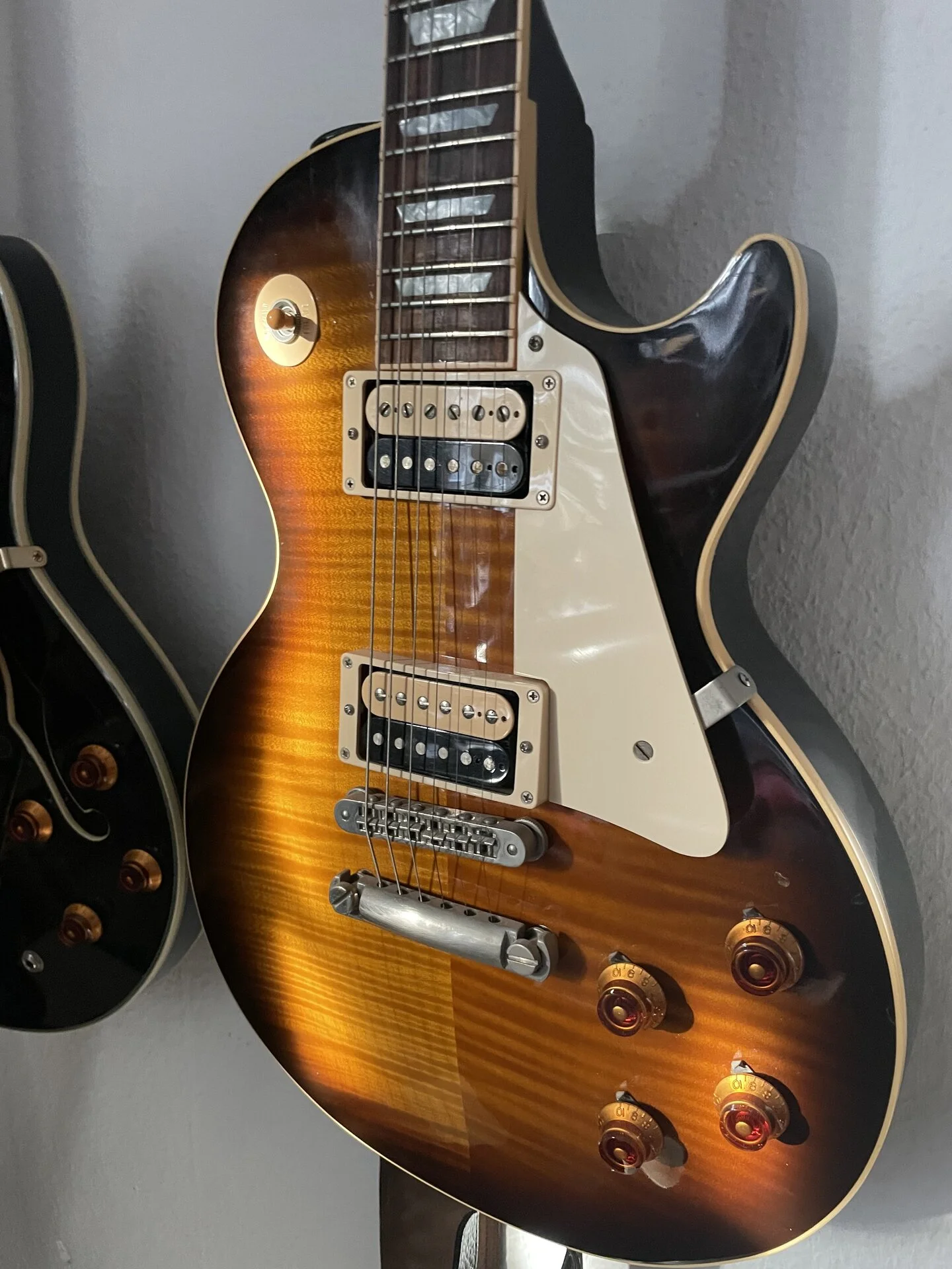 Gewicht 4119 g) Diese Paula hat eine besonders schön gemaserte Decke.Keine Brüche oder derbe Macken normale Gebrauchsspuren, Bünde im sehr guten Zustand keine Riefen) Pickups Gibson Burstbucker 2&3