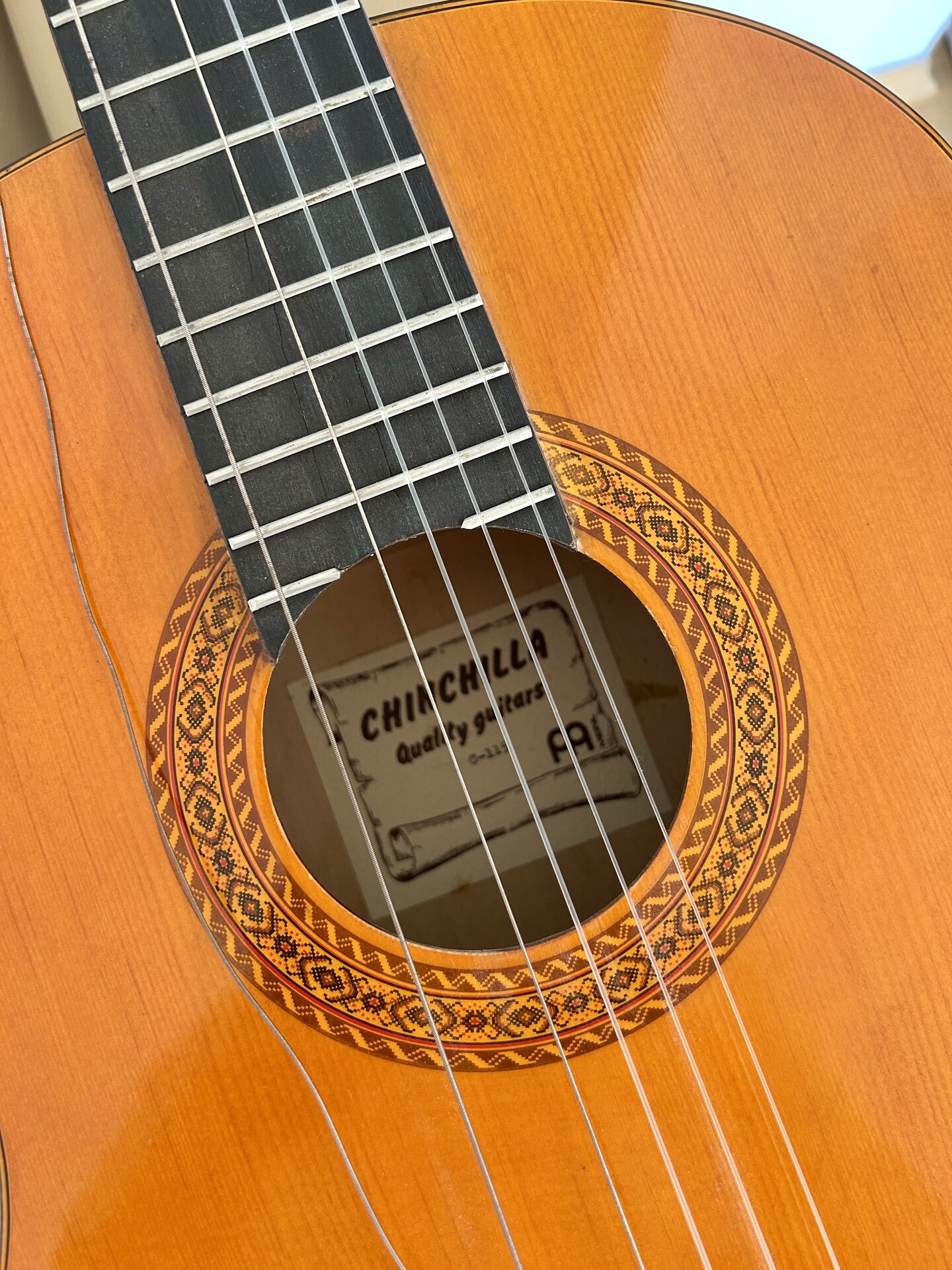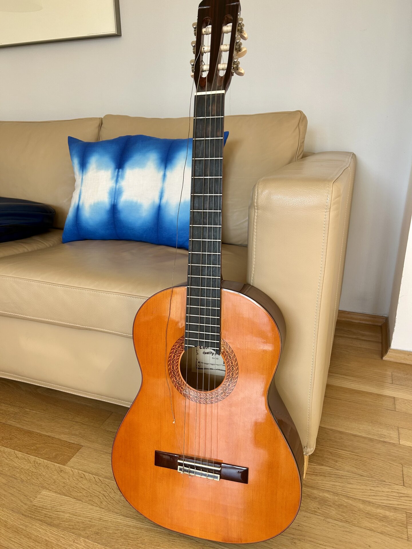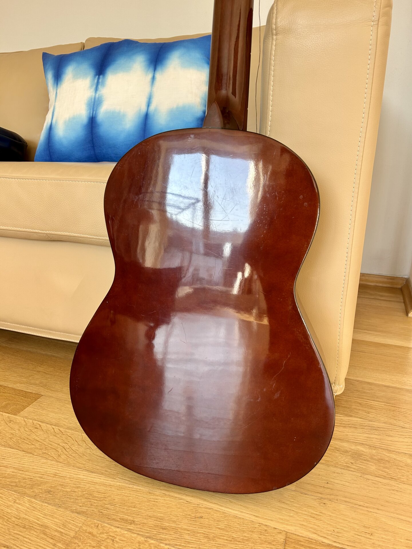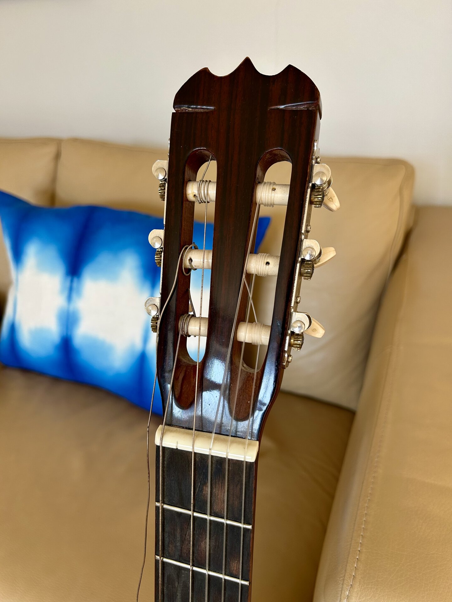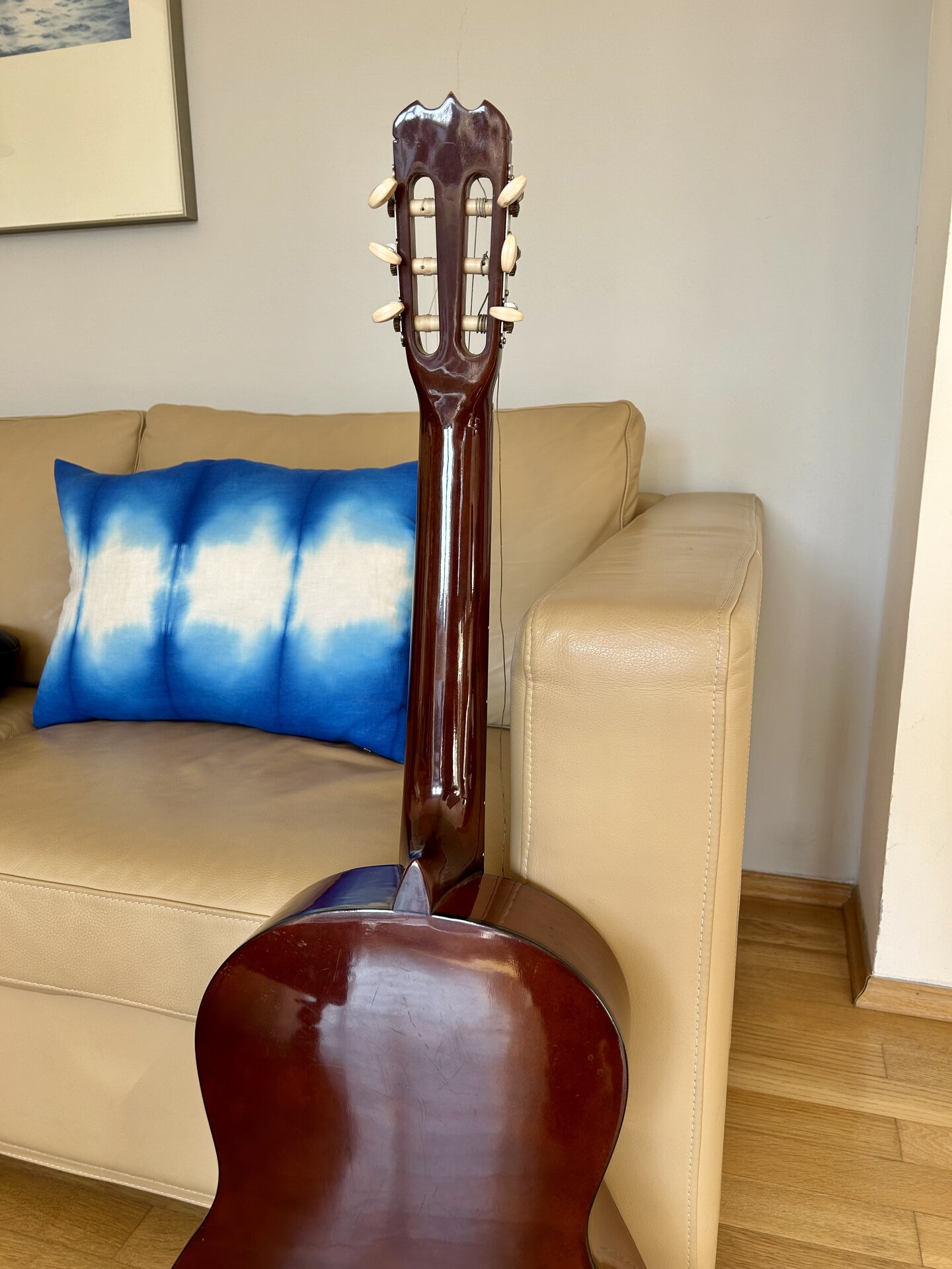 Die Gitarre stammt vermutlich aus den Jahren 1978 bis 1985 und wurde seit 1990 nicht mehr gespielt, nur sorgfältig gelagert. Sie hat Gebrauchsspuren, eine Seite hat sich gelöst und muss erneuert werden.