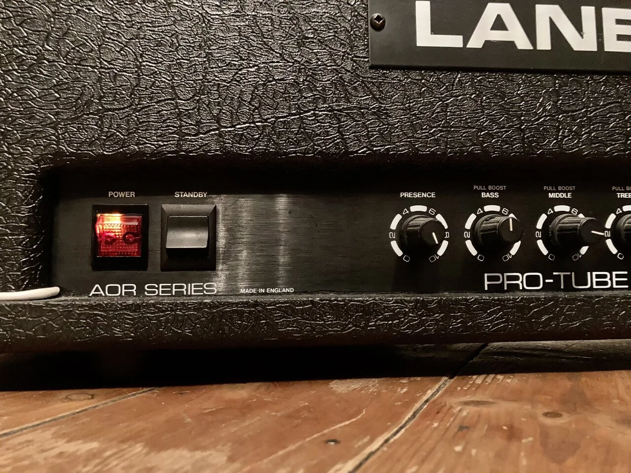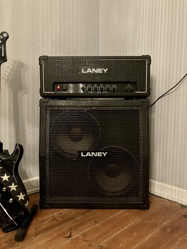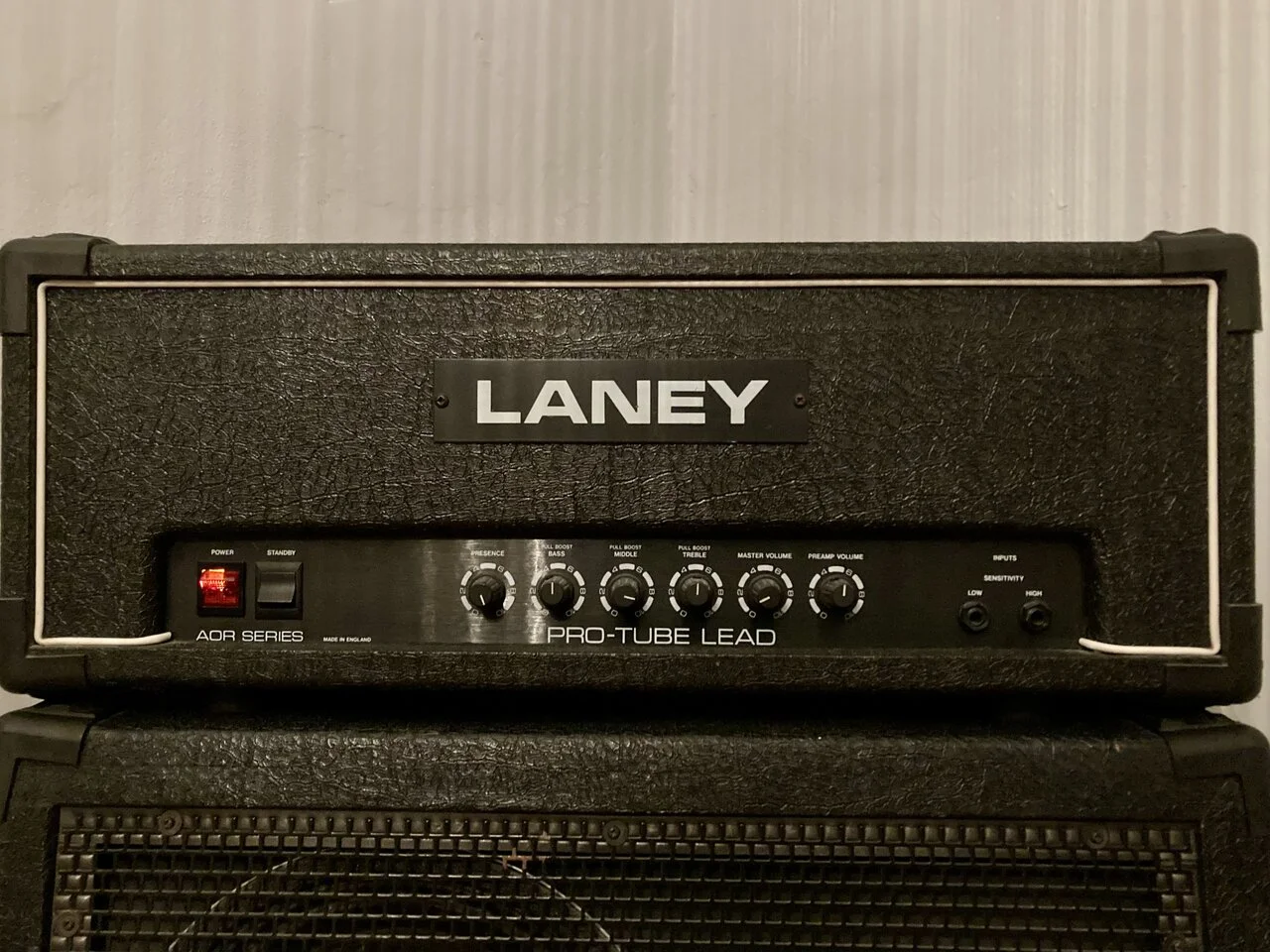 Diese abgewinkelte Box stammt aus der Laney AOR Pro-Tube-Serie; ist sehr robust, 140 Watt, beladen mit 2 X 12" hochwertigen HH 70 Watt britischen Lautsprechern. 8 Ohm Impedanz. Klingt großartig, sehr laut und behandelt saubere und übersteuerte Gitarrentöne wirklich gut. Kommt mit strapazierfähigen Seitengriffen. Beide Teile sind wie schon gesagt original, gebraucht und dennoch in einem für die Jahre sehr guten Zustand.