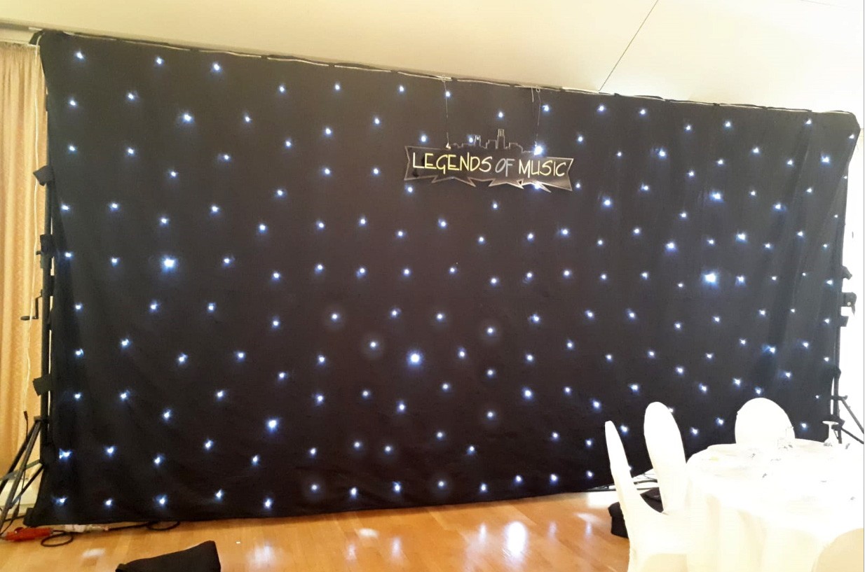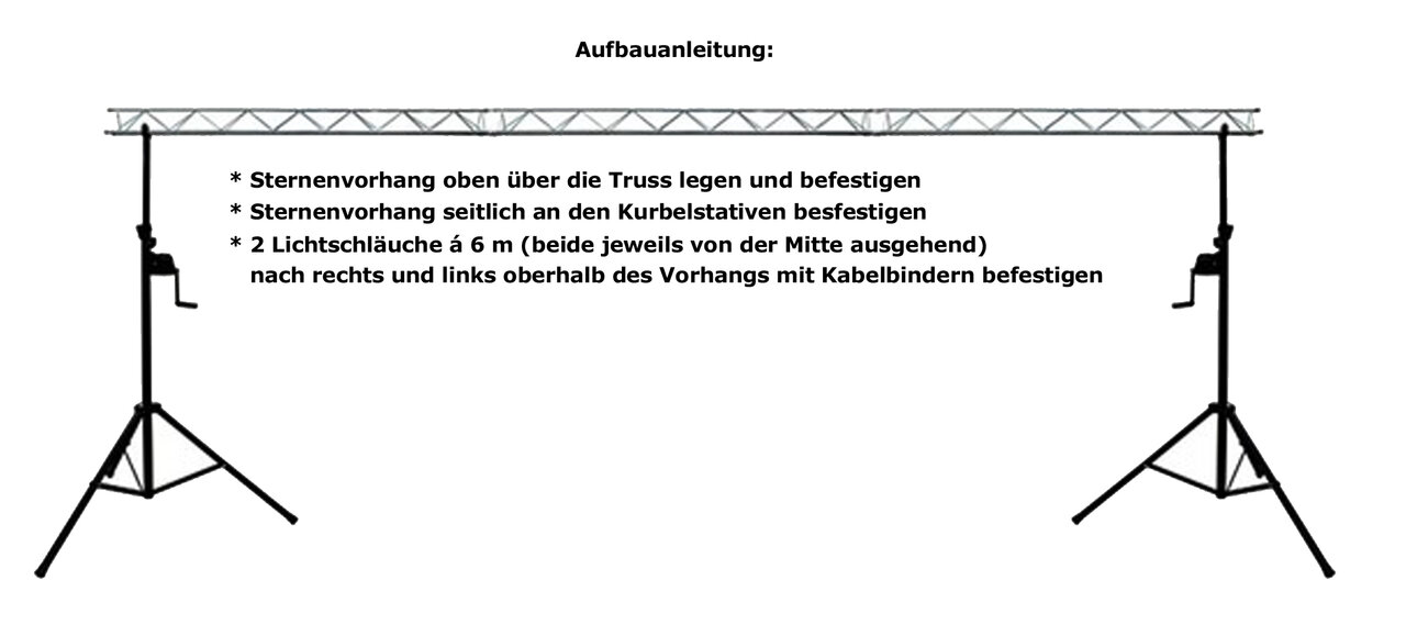 Inkl. Tasche, Netzteil mit Controller, 2 schweren Kurbelstativen, 3 x 2 m Truss, 2 zusätzlichen LED-Lichtschläuchen.