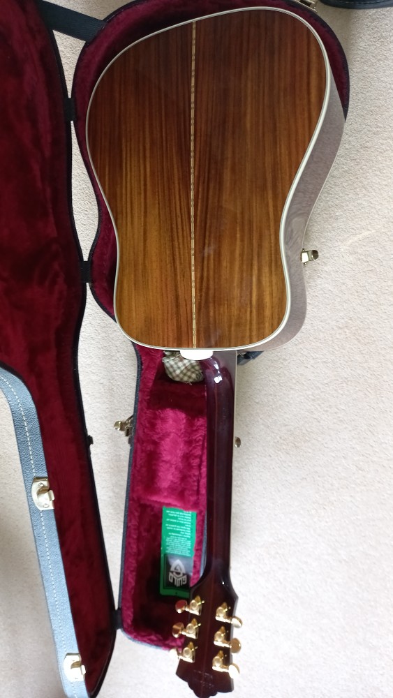 Wer sich für eine polyvalente, "amerikanisch" klingende Dread interessiert ... könnte hier fündig werden. Eine noch in Westerley gebaute, aber gut erhaltene und einwandfrei bespielbare Guild sucht ein neues Zuhause, weil der aktuelle Besitzer jetzt mehr auf kleinere Korpusformen steht. Am Binding könnte was gemacht werden - bekanntes "Problem" auch bei anderen Herstellern, stört aber beim Spielen nicht (mag subjektiv sein). Die Gitarre kommt im ebenfalls einwandfrei funktionierenden Originalkoffer.