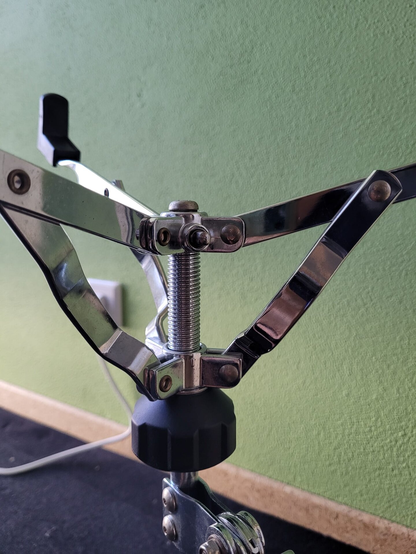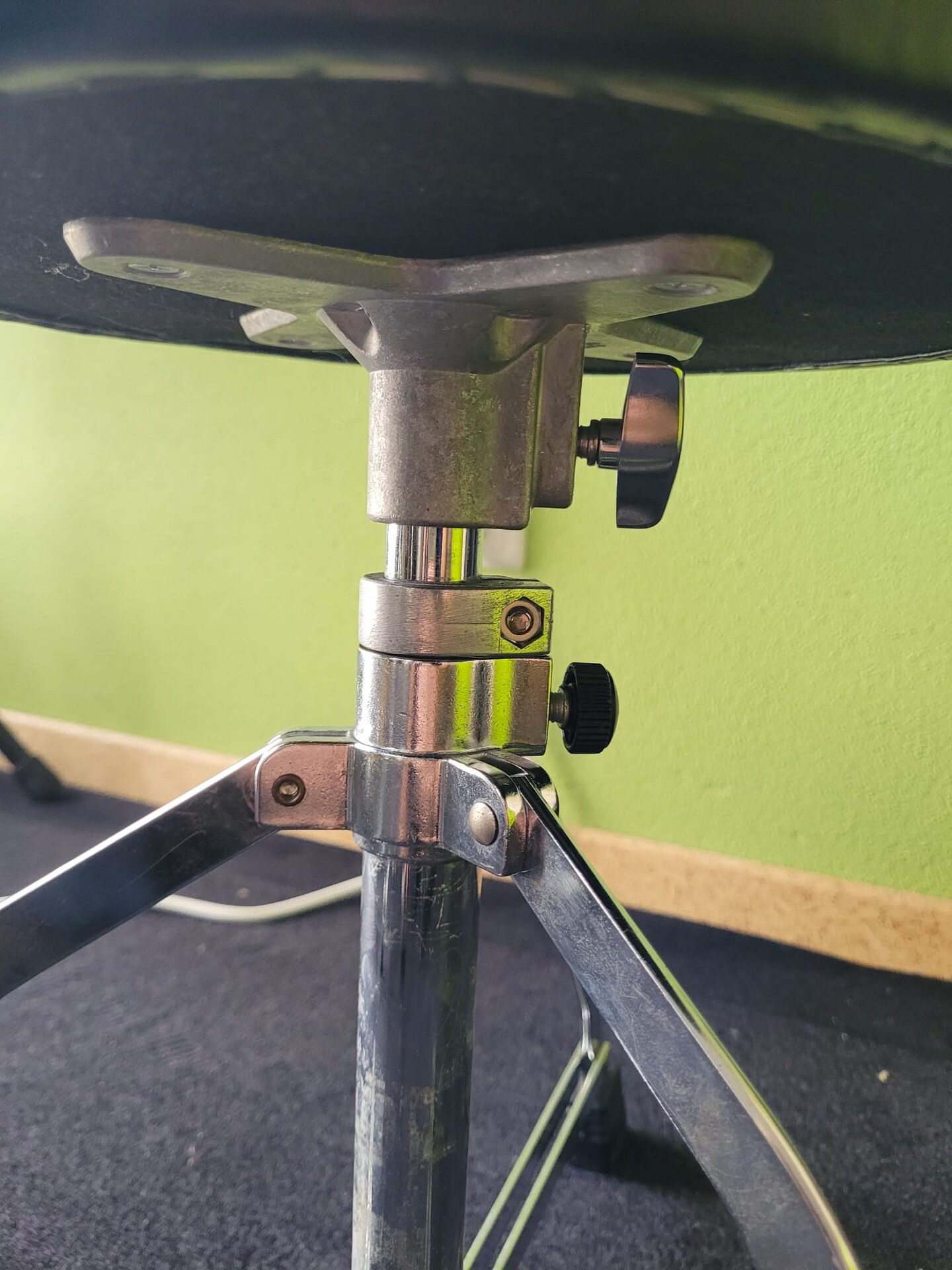 Thema Rost: An einigen Stellen dieser Hardware ist Rost zu finden (u.a. am Snare-Ständer und Hocker), die die technische Funktion aber nicht beeinträchtigen. Die Schrauben sind alle bedenkenlos benutzbar, die meisten noch sehr leichtgängig.