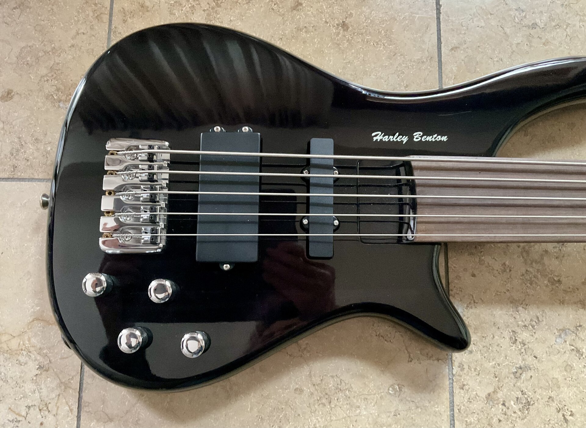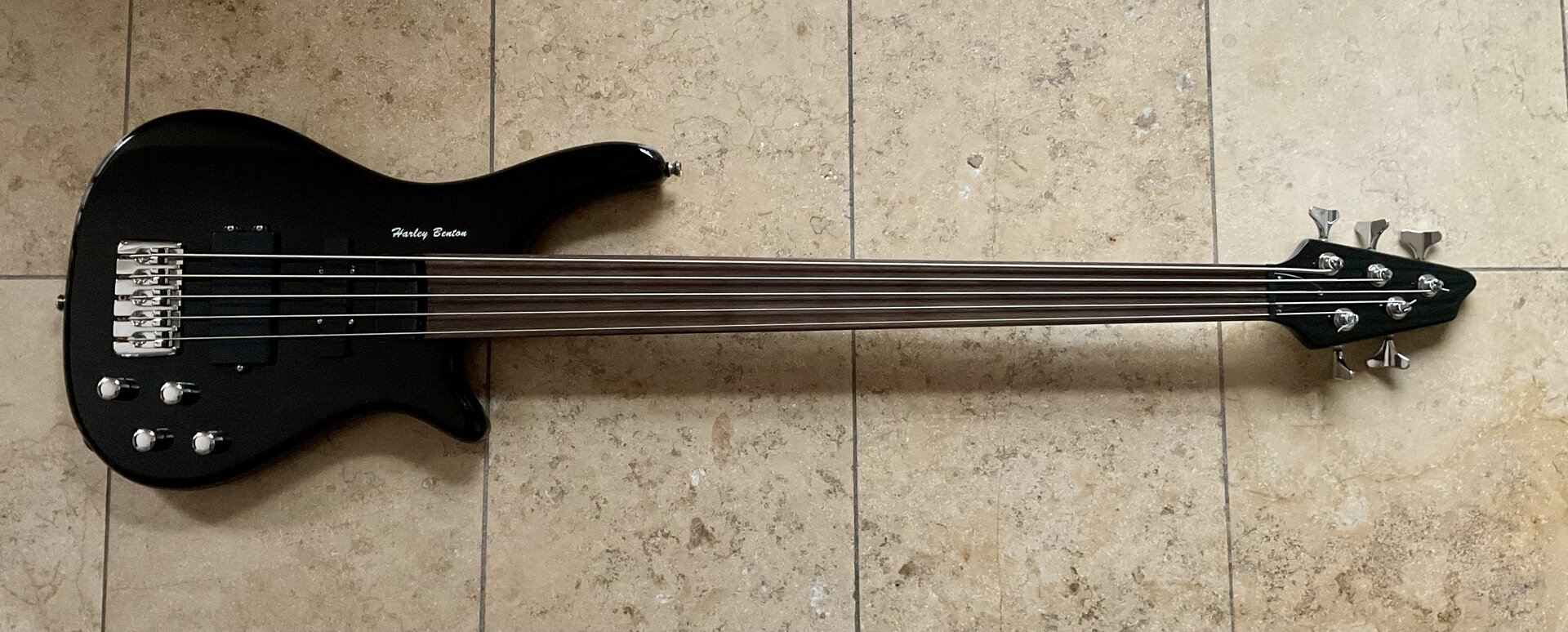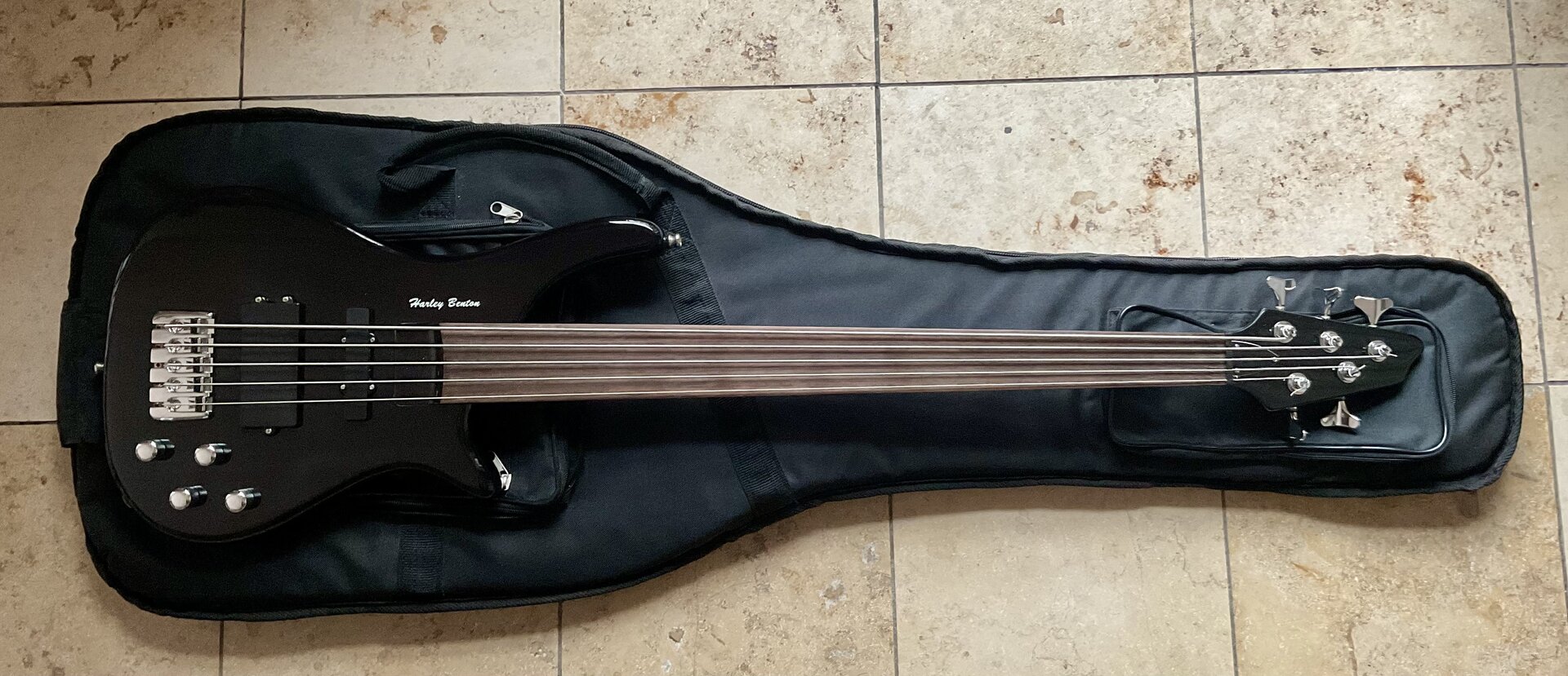 | Sehr gepflegter und selten gespielter E-Bass der Marke Harley Benton. Äußerst geringe Gebrauchsspuren, Kratzer keine. Den Bass hab ich als hauptberuflicher Gitarrist ab und an im Orchester gespielt. 5 Saiten: H bzw. B, E A, D, G Stimmung (von tief nach hoch). Fretless wegen der knurrigen Glissandi (slides im Neudeutschen Long Scale (34 Zoll), also eher was für nicht so kleine Hände. Die Elektronik ist aktiv und wird von einem 9V Block, der gut erreichbar in einem Extrafach untergebracht ist (s. Foto), gespeist. Mitverkauft wird ein gut passendes Gigbag von Thomann mit ausreichen Taschen für Saiten, Zubehör etc…. Am liebsten Abholung weil großes Paket. Versand erfolgt mit dpd, ich übernehme einen Teil der Versandkosten. Privatverkauf: Gewährleistung und Rücknahme ausgeschlossen. Festpreis! Bezahlung mit Paypal for friends oder in bar bei Abholung. |