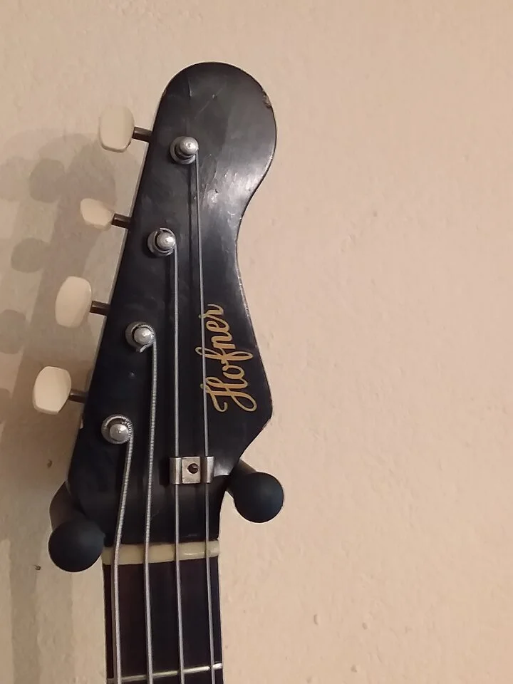Verkaufe meinen Höfner 183 Bass, Bj. Anfang 1970, superleichte 2,6 Kg. Top Original ausser unterem Gurtpin (der geht immer kaputt) und dem Knochensattel.