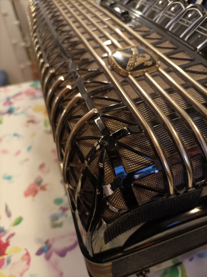 Hallo zusammen. Ich biete das oben genannte Akkordeon zum Verkauf an. Der Zustand ist gut es gibt jedoch eine kleine Delle an der Abdeckung. Akkordeon hat einen Midi Anschluss und wurde damit an einem Solton MS 40 betrieben. Das Netzteil zum Midi Anschluss wird mitgeliefert.