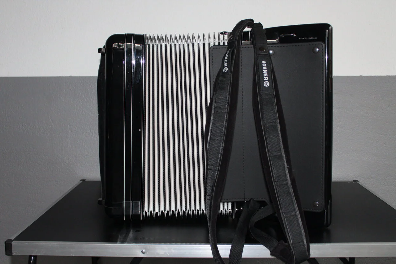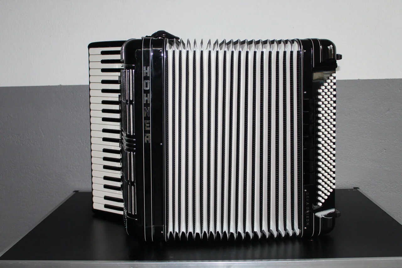 Verkaufe ein Akkordeon von Hohner. Es ist kaum bespielt worden .Wer genaueres wissen will, kann sich auf der Webseite von Hohner informieren. Das Akkordeon sieht aus wie neu hat nur einen kleinen Kratzer . Ein Hartschalenkoffer mit Trolley ist auch dabei. Bei Kaufabschluß gebe ich kostenlos einen Notenständer und ein paar Notenhefte dabei.