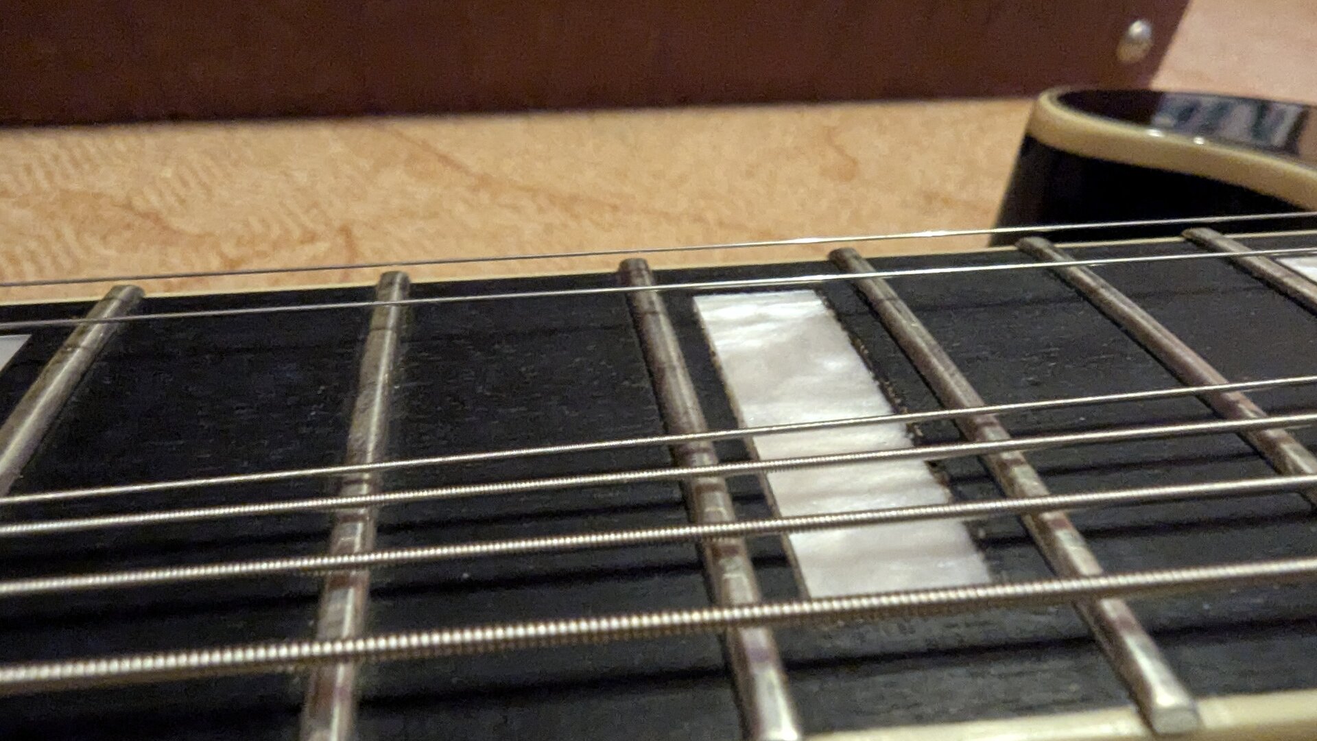 Es wurde ein Nullbund vom Fachmann installiert (bessere Intonation) und die Bridge wurde auf der Decke fixiert (erleichtert den Saitenwechsel erheblich...)