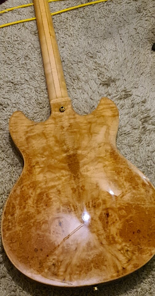 Die BM (Burled Maple) war eine limitierte Auflage (nur 200 St. Produziert), mit echte Abalon Inlays, Schlagbrett und Tone-Poti aus Holz und ein sehr aufwendiges Binding aus geflammtes Ahorn.