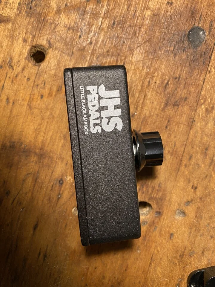 zum Verkauf biete ich die Little Black Amp Box von JHS an. Erlaubt es im Einschleifweg eines Verstärkers die Vorstufe manuell zu drosseln, so dass man auch leistungsstarke Amps bei geringerer Lautstärke spielen kann. Ich hatte es im Einschleifweg meines JVM410H, weil das Master-Volume für Zimmerlautstärke im Millimeterbereich zwischen flüsterleise und brüllend laut sprang. Mit der Little Black Amp Box hatte ich einen weiten Regelweg und konnte die Lautstärke sehr angenehm einstellen.