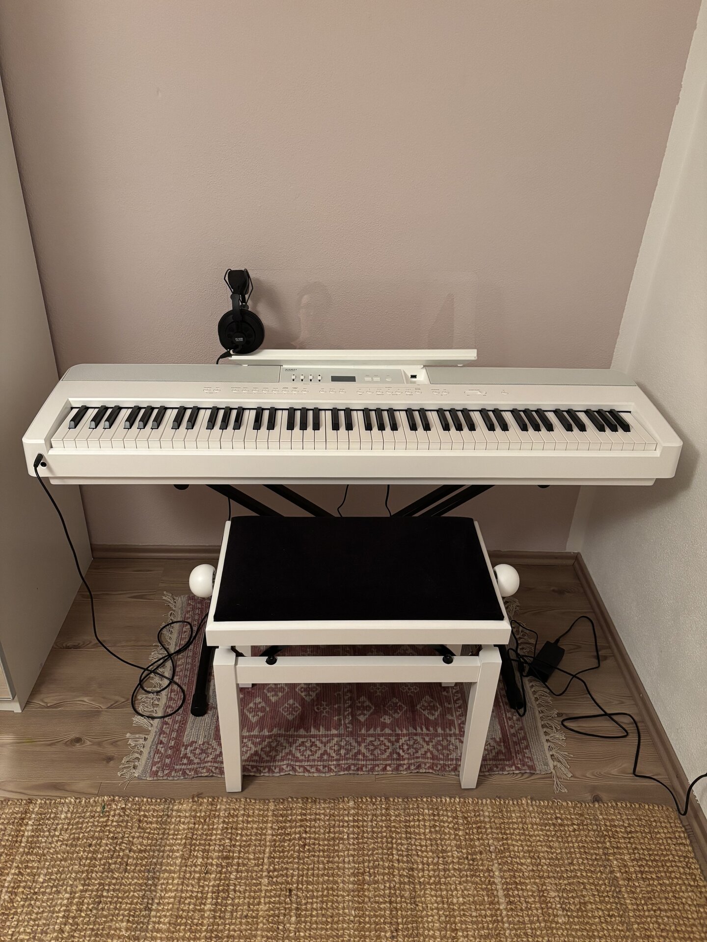 Tolles Epiano mit einer hervorragenden, preisgekrönten Tastatur und einem tollen Klang. Es hat ein sehr kraftvolles Soundsystem. Es wurde als Übeinstrument angeschafft zusätzlich zum akustischen Klavier, um leise üben zu können. Allerdings stelle ich fest , dass ich es einfach zu wenig benutze. Deshalb darf es weiterziehen.
